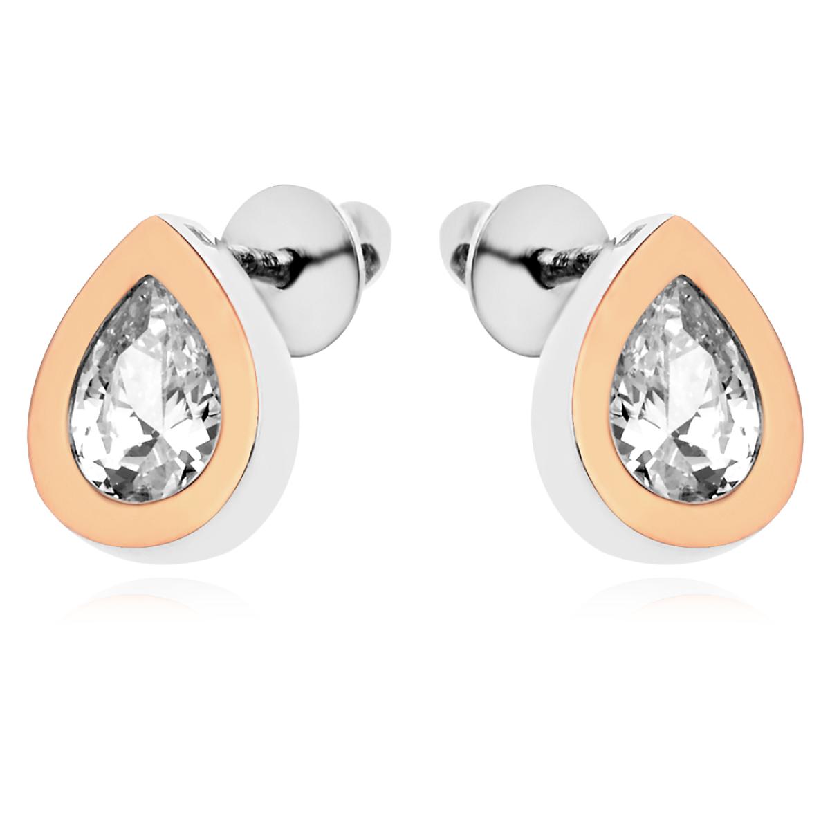 Сребърни обеци Капка с цирконий и златен обков
