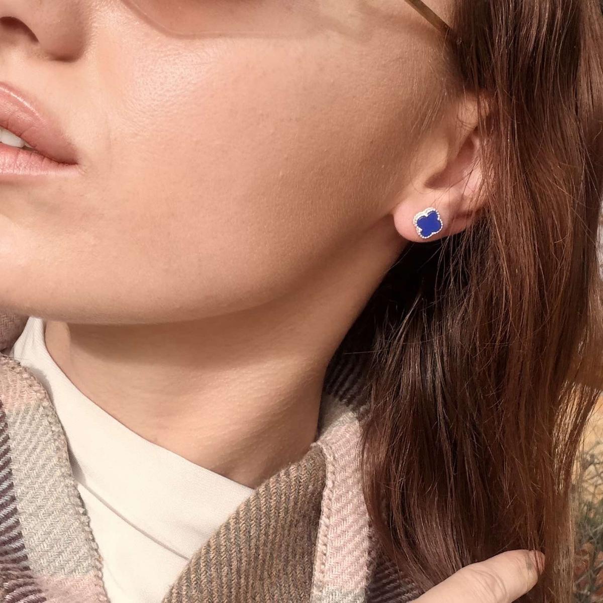 Модерни сребърни обеци във формата на детелина. Среброто е с родиево покритие или покритие. Изключително нежни и подходящи за всякакви поводи Интересни и необичайни – с право можем да дадем такова определение на този изящен чифт сребърни обеци. Обеците, оформени по такъв маниер са по-ясно забележими. За разлика от стандартния вариант, този ще се отличава дори при пусната буйна дълга коса. Композиция от материали, която дава един удивителен краен резултат. Въпросният чифт обеци е изработен от първокласно сребро проба 925 . Това е едно качествено ювелирно изделие, подходящо както за ежедневието, така и за официални поводи. Закопчалката при този модел е класически винт – един от най-удобните за поставяне и сваляне. Обеците ще ви бъдат доставени заедно със сертификат за произход и качество. Вижте още: