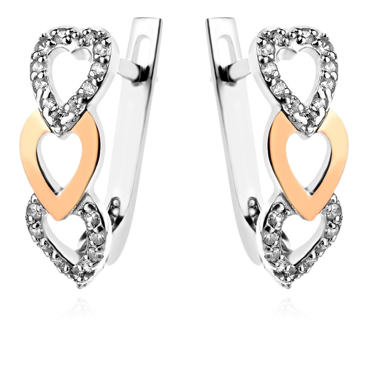 Сребърни обеци Преплетени сърца със златен обков