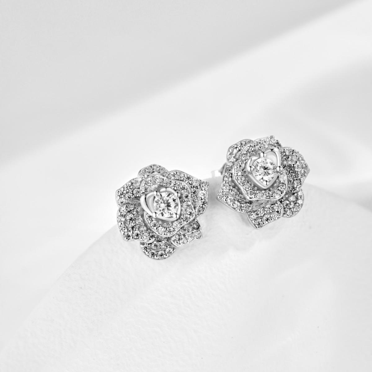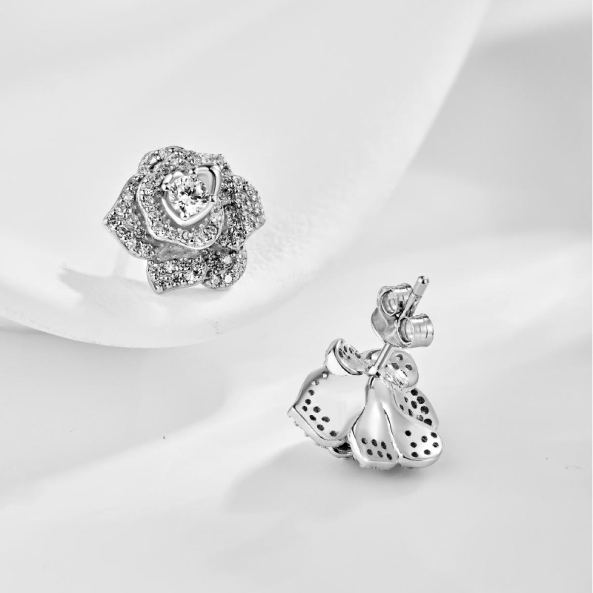 Нежни и романтични, тези сребърни обеци във формата на роза са символ на любов и изящество. Изработени от сребро проба 925, те впечатляват с фина изработка и детайли.