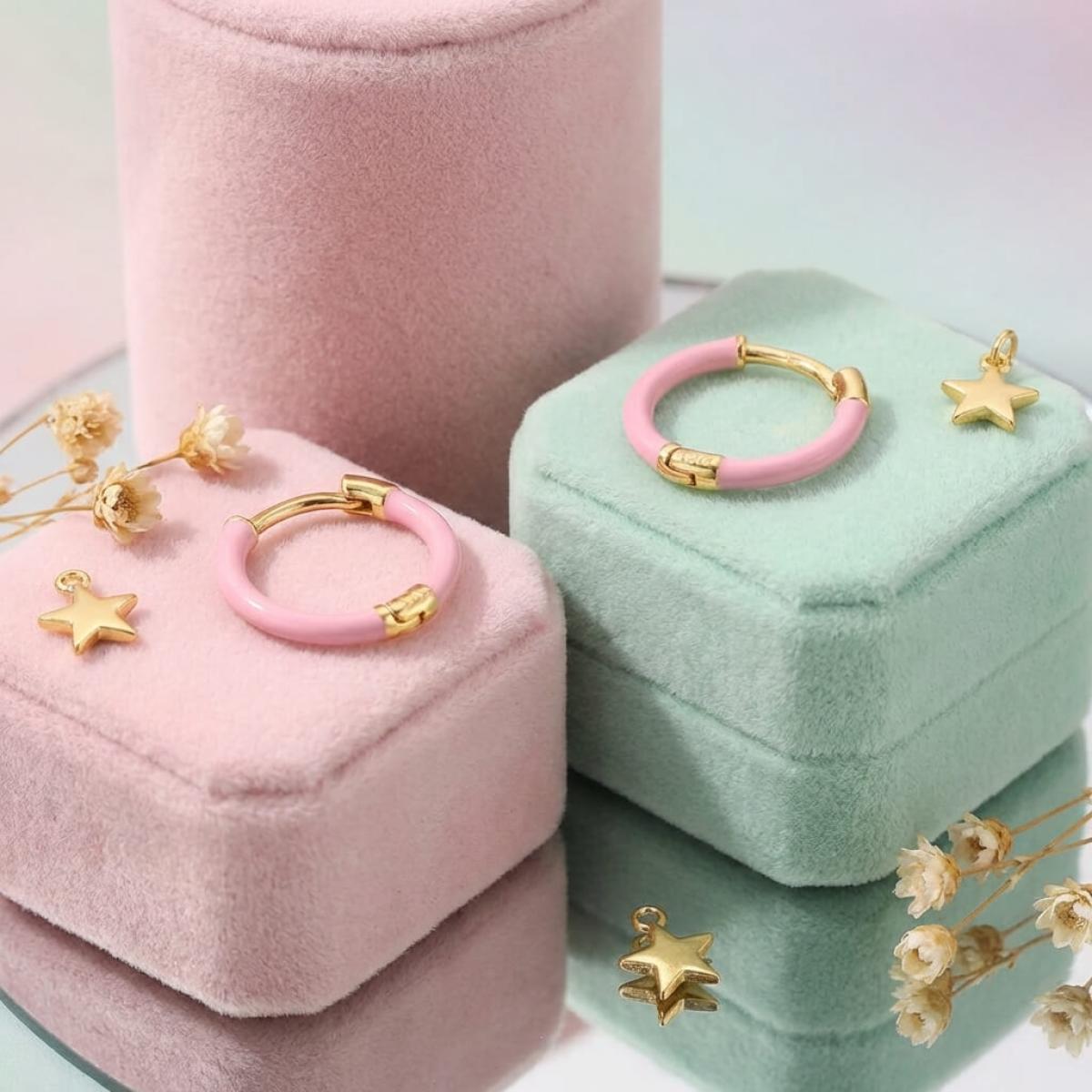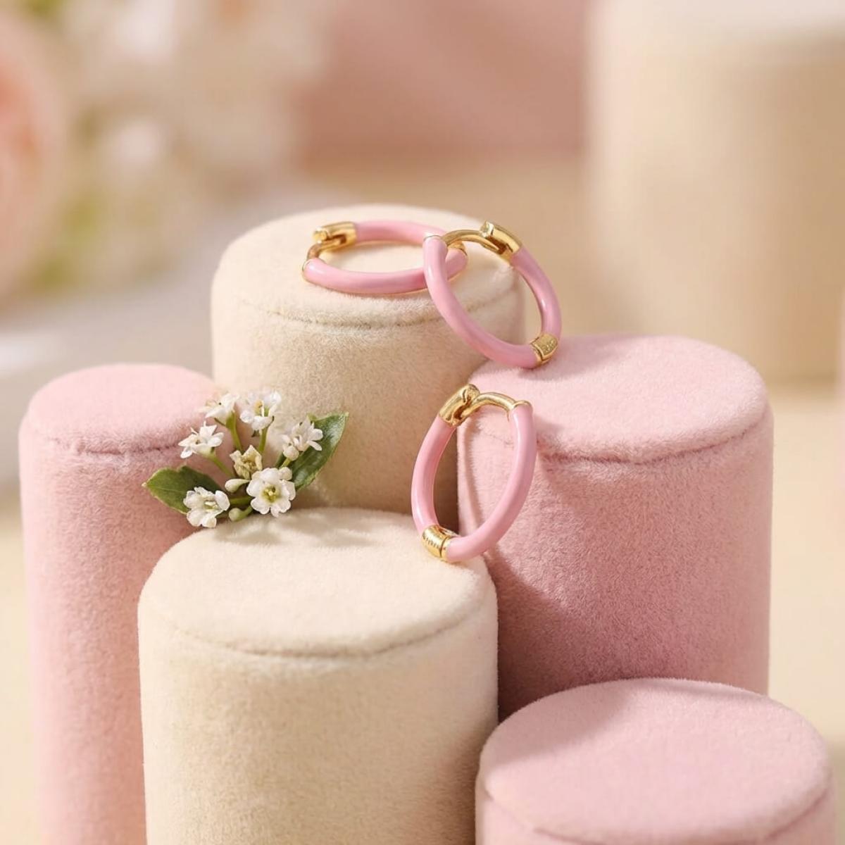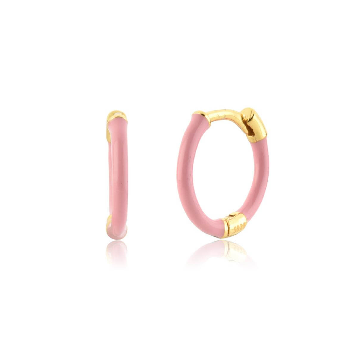 Ако харесвате по-топлия слънчев нюанс на златото, но не можете да си го позволите, винаги можете да се възползвате от достъпната цена на позлатените ни сребърни бижута. Основата на обеците Ема е сребро 925, но те изглеждат като направени от чисто злато. Цветовата комбинация от розов емайл и класическо жълто злато е повече от обаятелна.