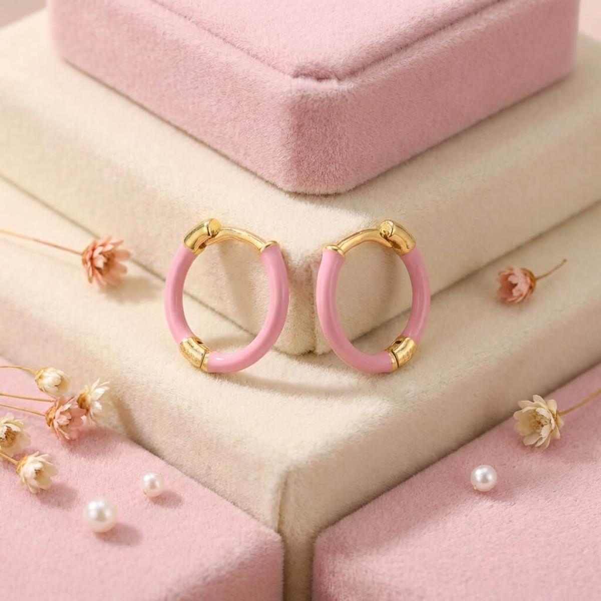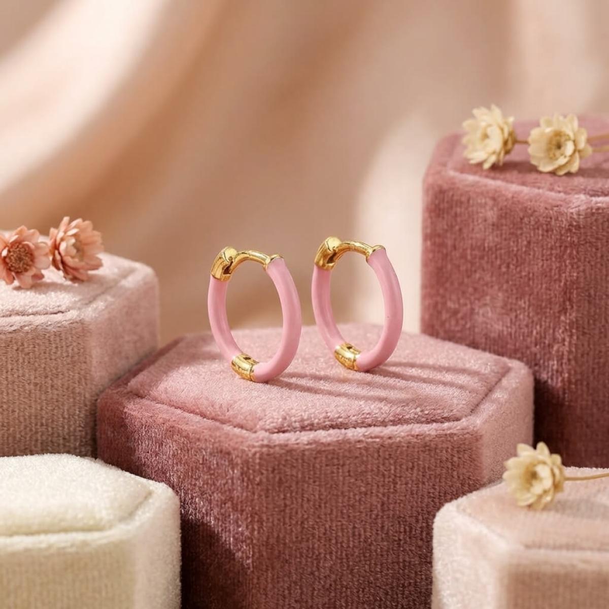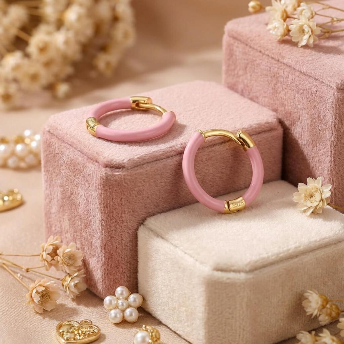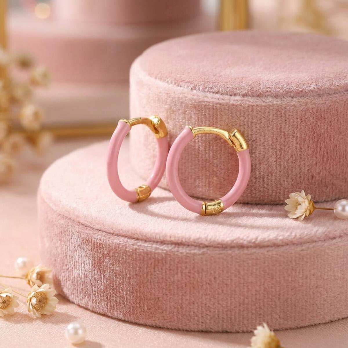 Ако харесвате по-топлия слънчев нюанс на златото, но не можете да си го позволите, винаги можете да се възползвате от достъпната цена на позлатените ни сребърни бижута. Основата на обеците Ема е сребро 925, но те изглеждат като направени от чисто злато. Цветовата комбинация от розов емайл и класическо жълто злато е повече от обаятелна.