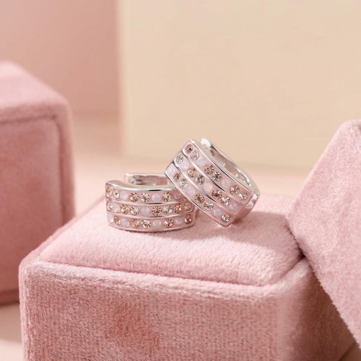 деликатна сребърна обстановка, украсена с блестящ набор от розови кристали. Кристалите са внимателно подбрани заради