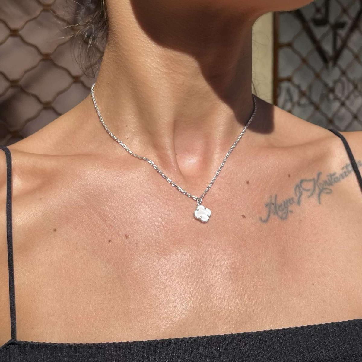 Елегантно и стилно колие, изработено от сребро проба 925, което впечатлява със своя фин дизайн. Вдъхновено от класическите форми на природата, One Cleef е символ на изящество и хармония. Подходящо е както за ежедневието, така и за специални поводи.