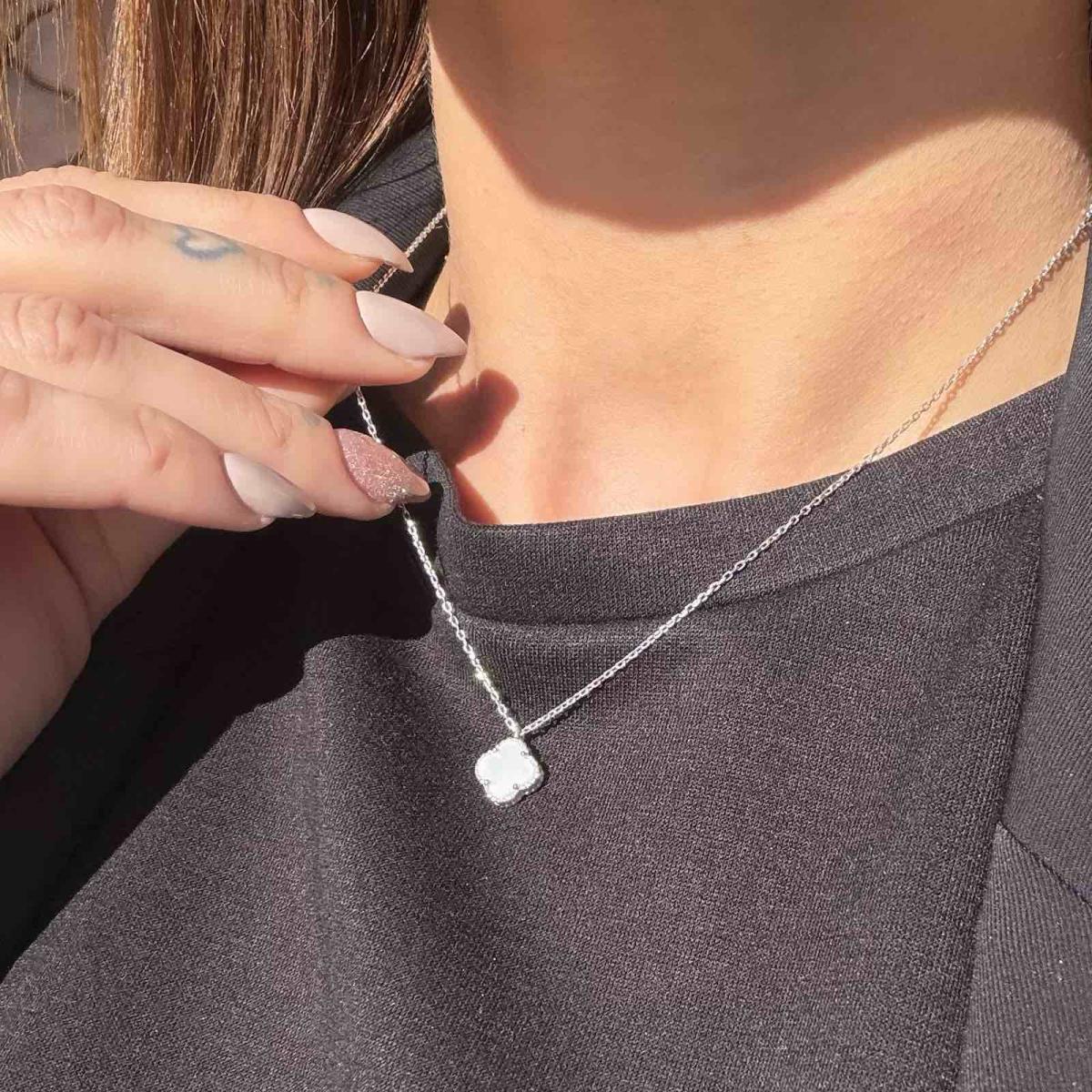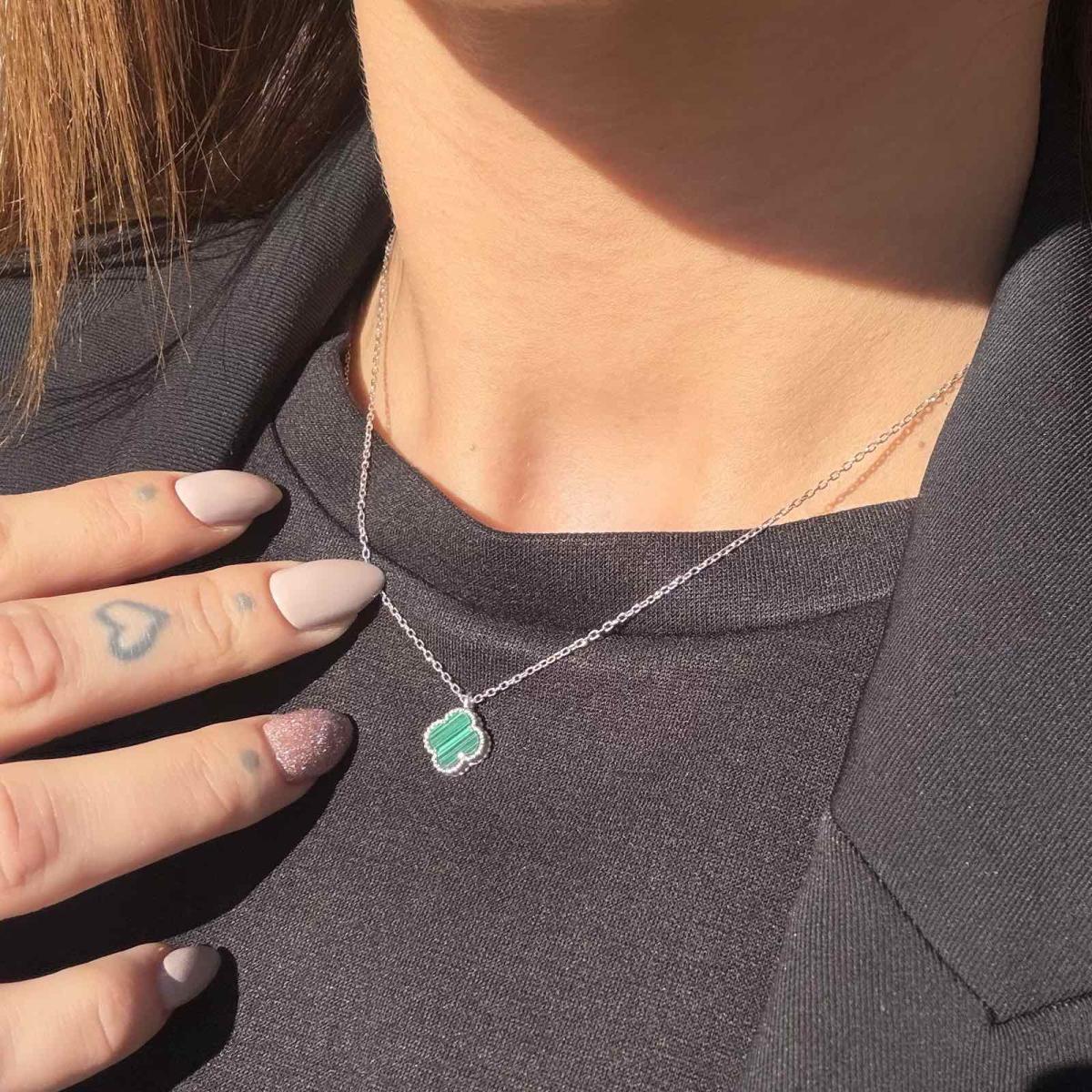 Елегантно и стилно колие, изработено от сребро проба 925, което впечатлява със своя фин дизайн. Вдъхновено от класическите форми на природата, One Cleef е символ на изящество и хармония. Подходящо е както за ежедневието, така и за специални поводи.