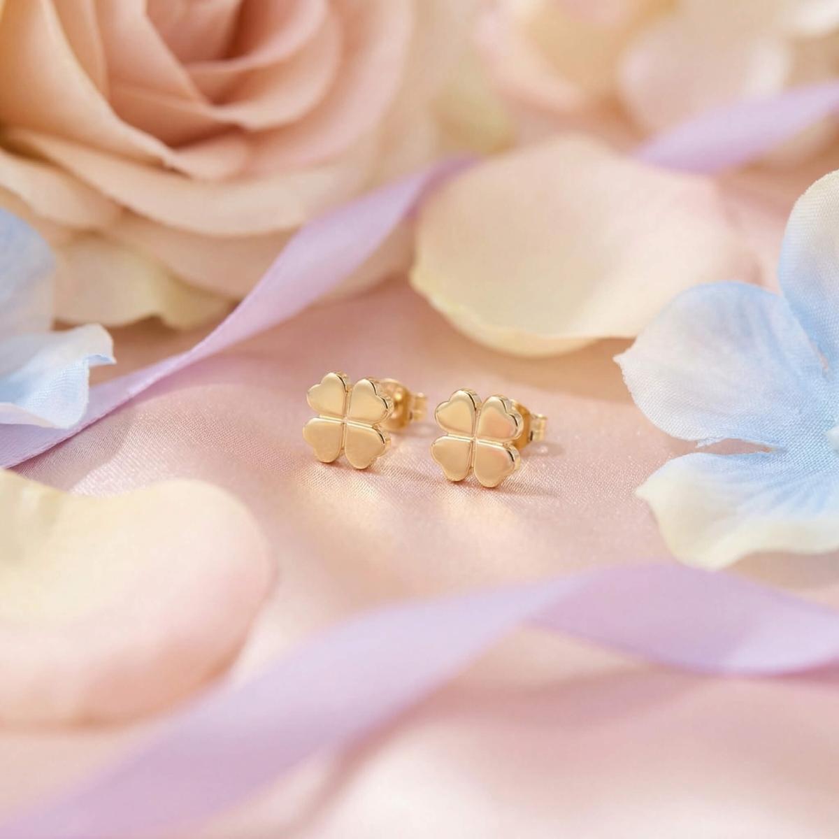 Основният декоративен елемент в дизайна на тези детски обечки е четирилистната детелина – универсален символ на късмет, благополучие и позитивна енергия. Детелинката е оформена от два вида злато: жълто, което носи топъл, слънчев блясък, и бяло, което добавя нотка чистота и модерна изисканост.