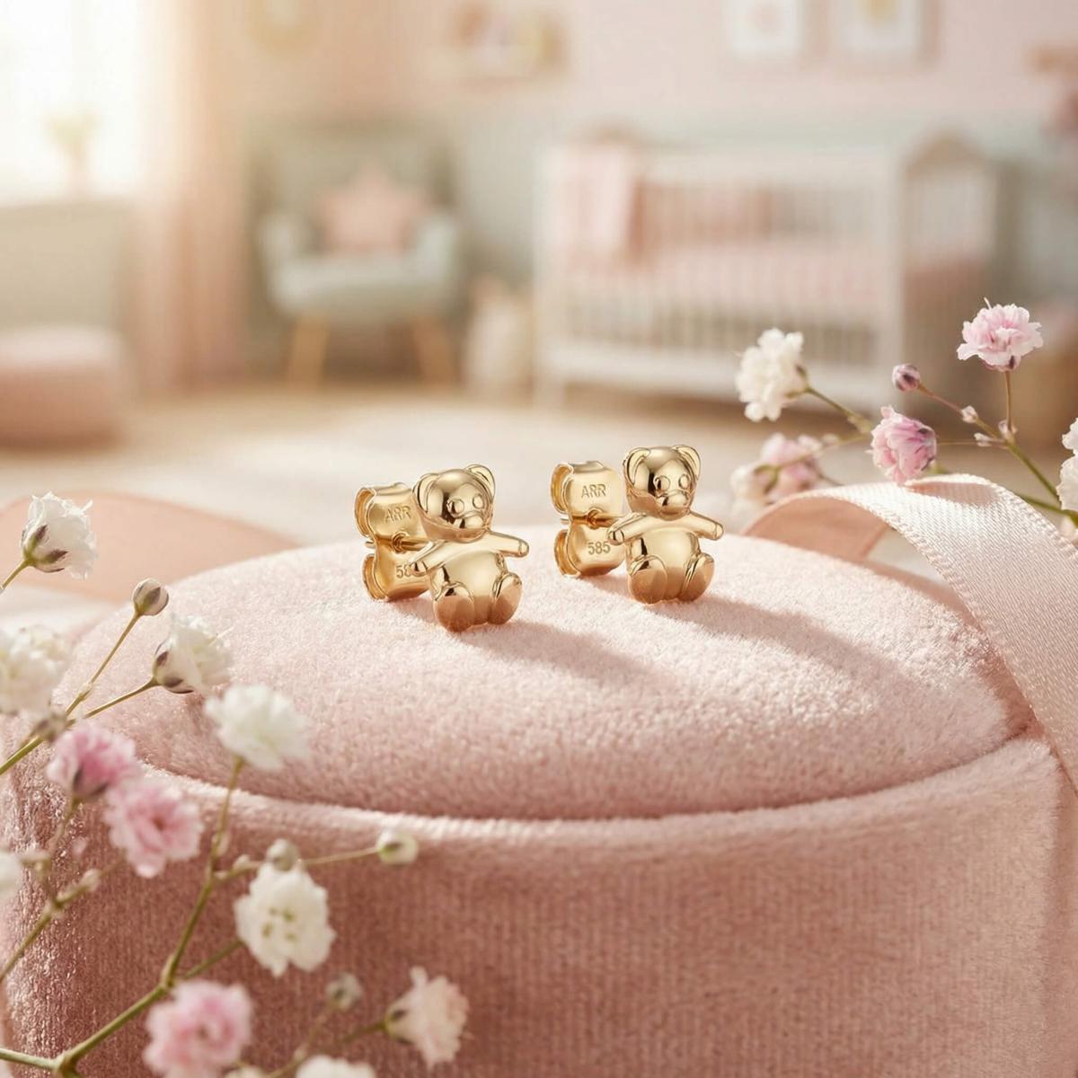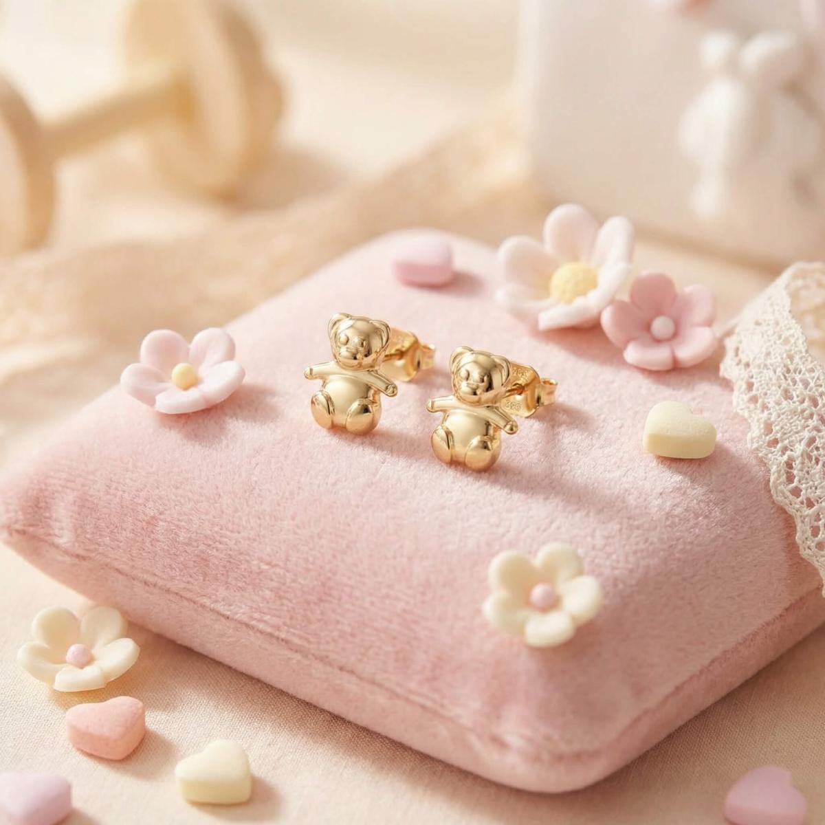 Изработени от висококачествено злато, обеците представляват изображение на малко мече, което е символ на нежност и игривост. Те са подходящ подарък за рожден ден, кръщене или друг специален повод, който ще направи вашето дете още по-щастливо и усмихнато.