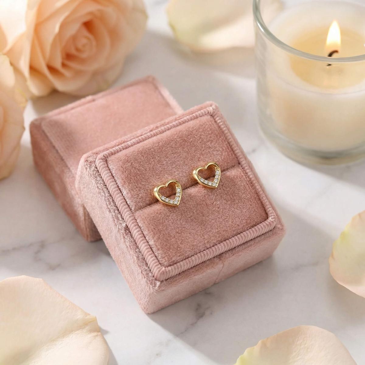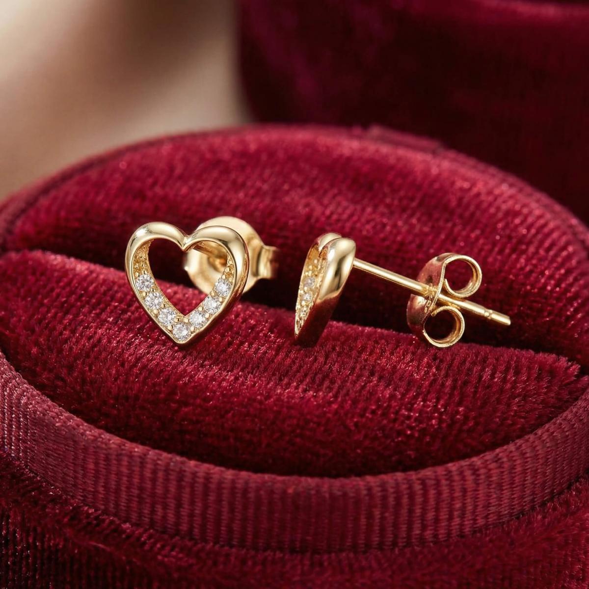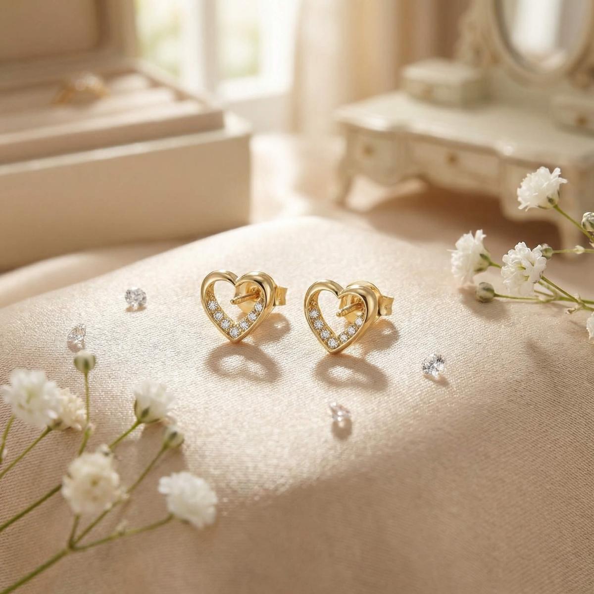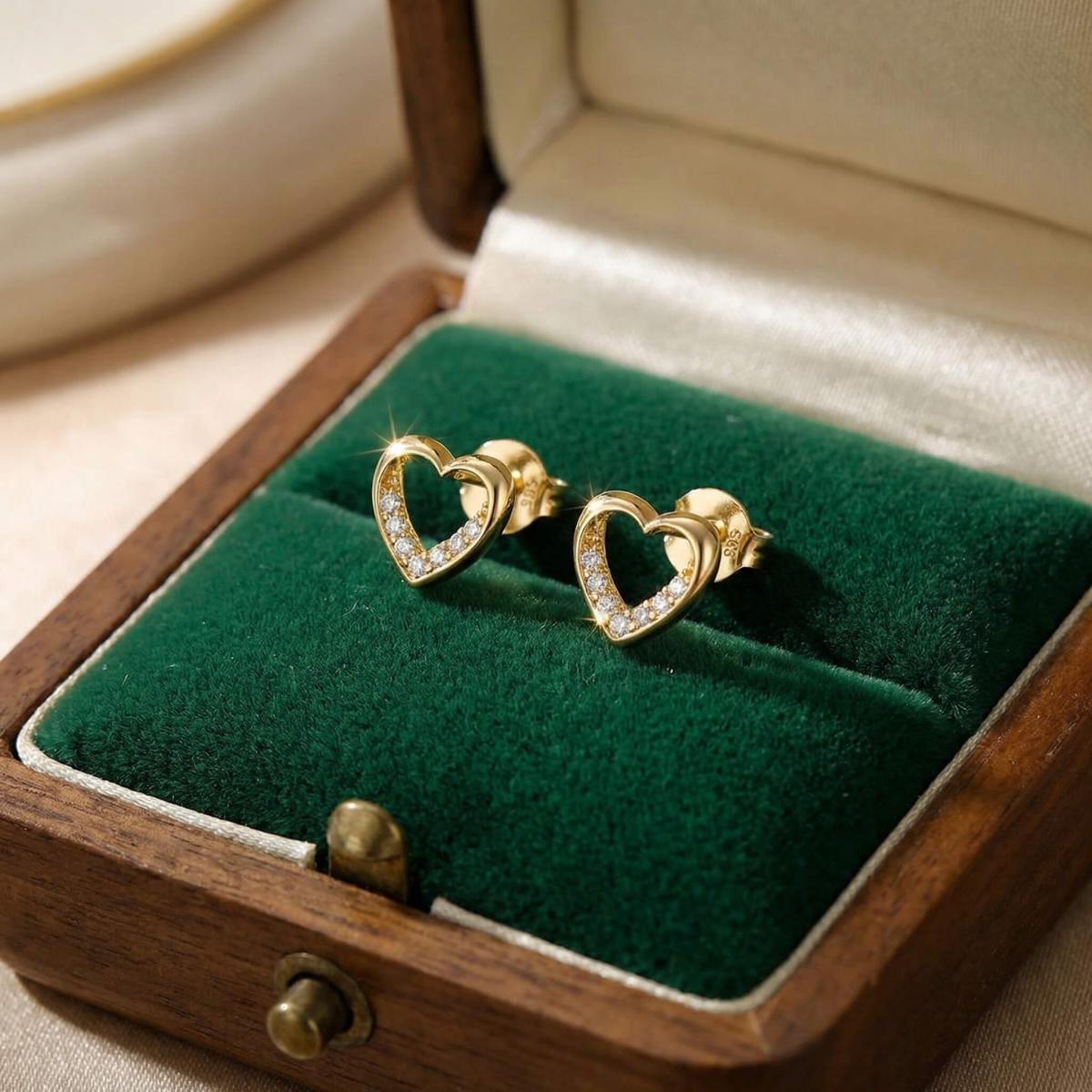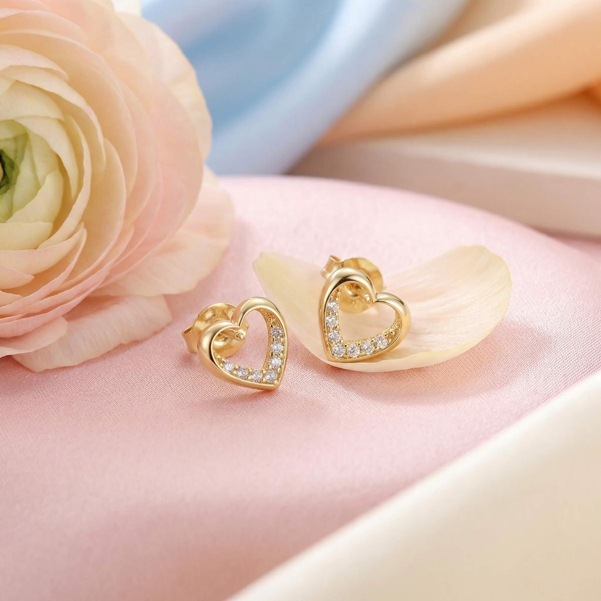 Златни обеци Блестящо сърце
