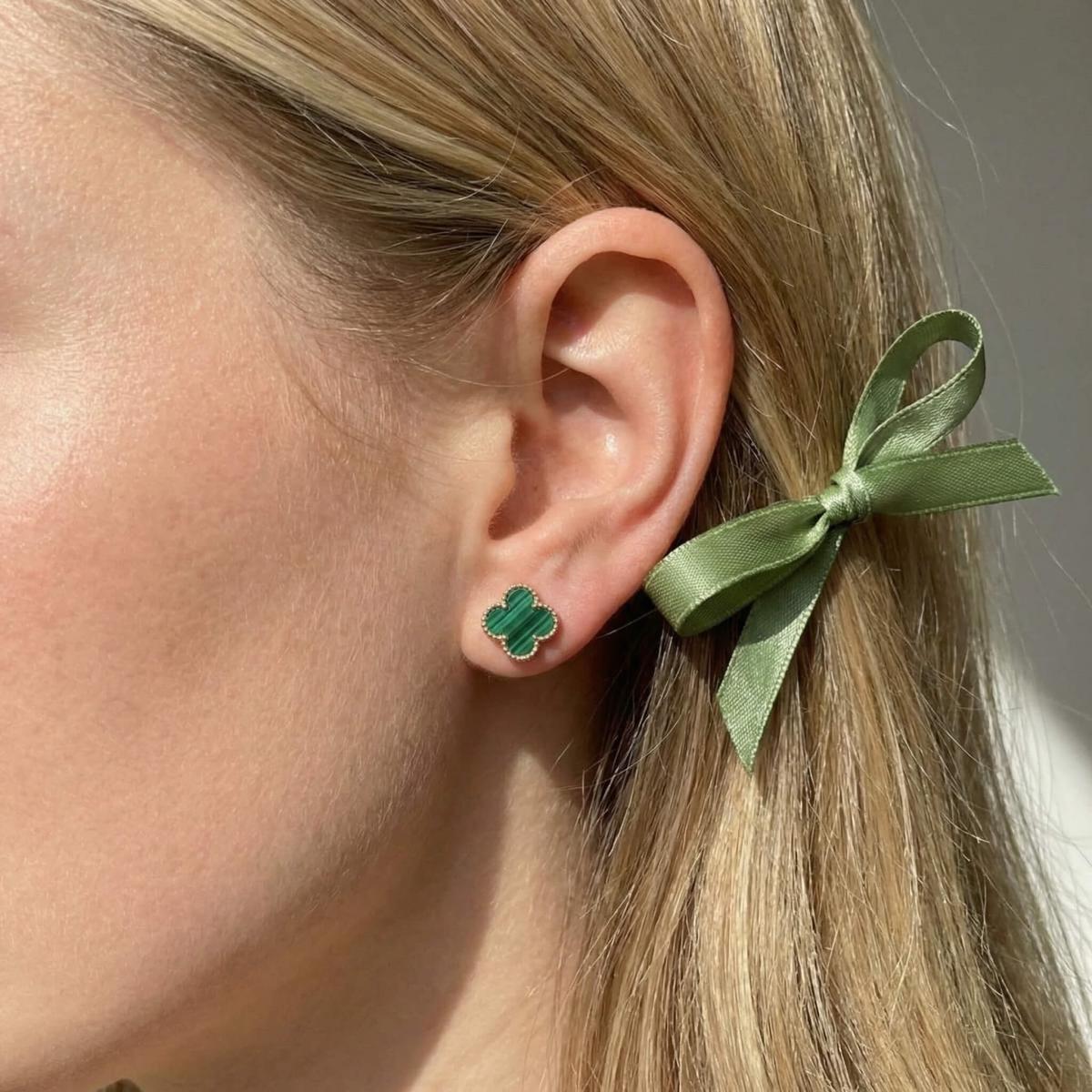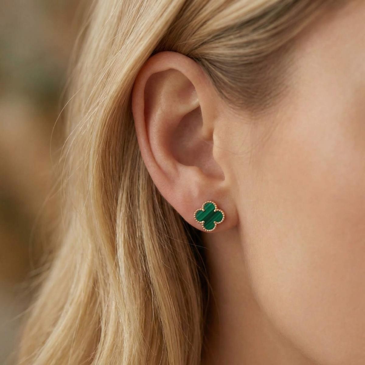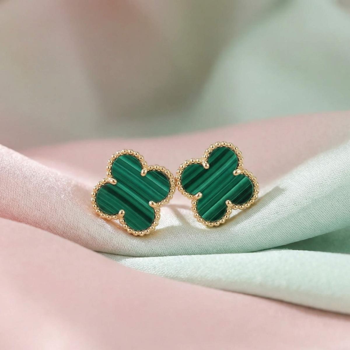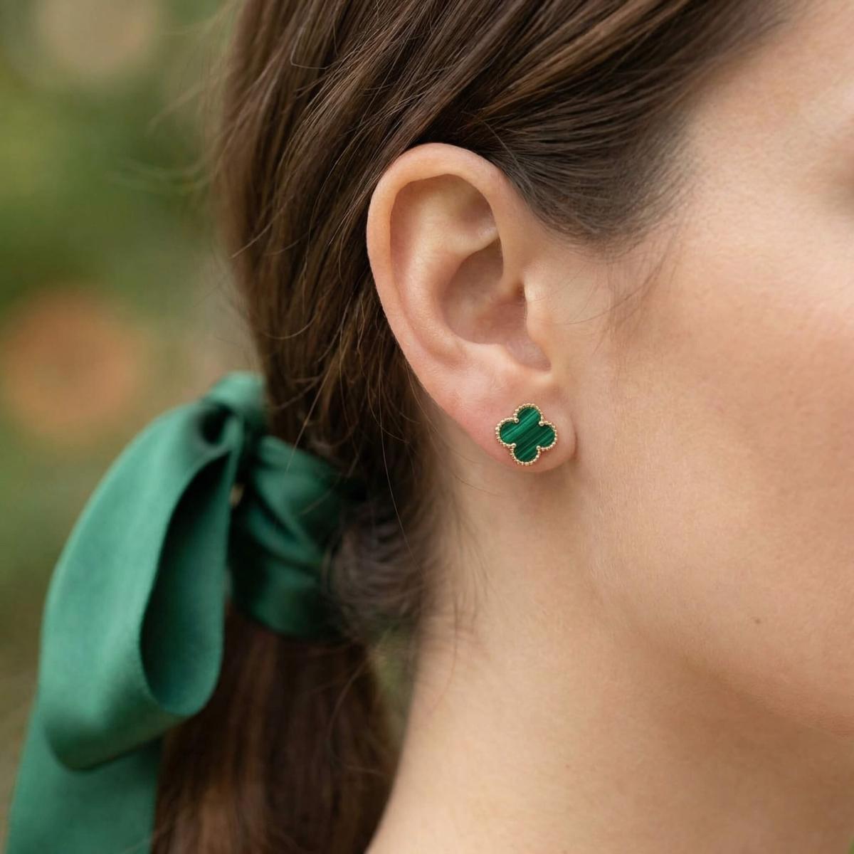 Златните обеци с малахит във форма на детелинки са идеалният подарък за деца и момичета в тийнеджърска възраст. Нежни, удобни за носене и преди всичко красиви, те ще се забелязват и ще привличат погледа към красивото детско личице. Високото качество на материалите и безупречната изработка са причина да ги поръчате още сега.