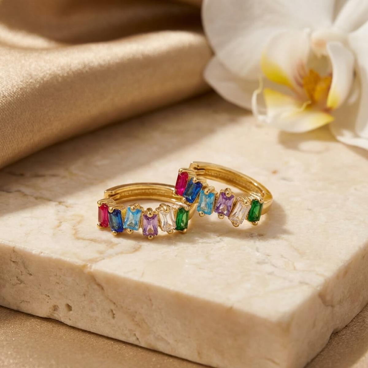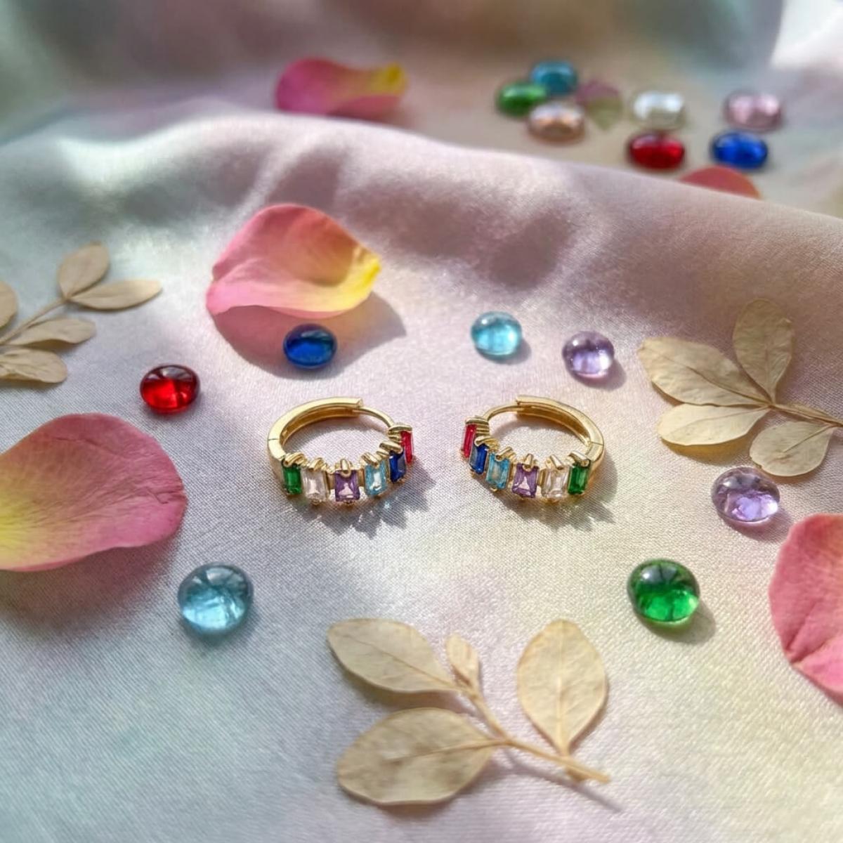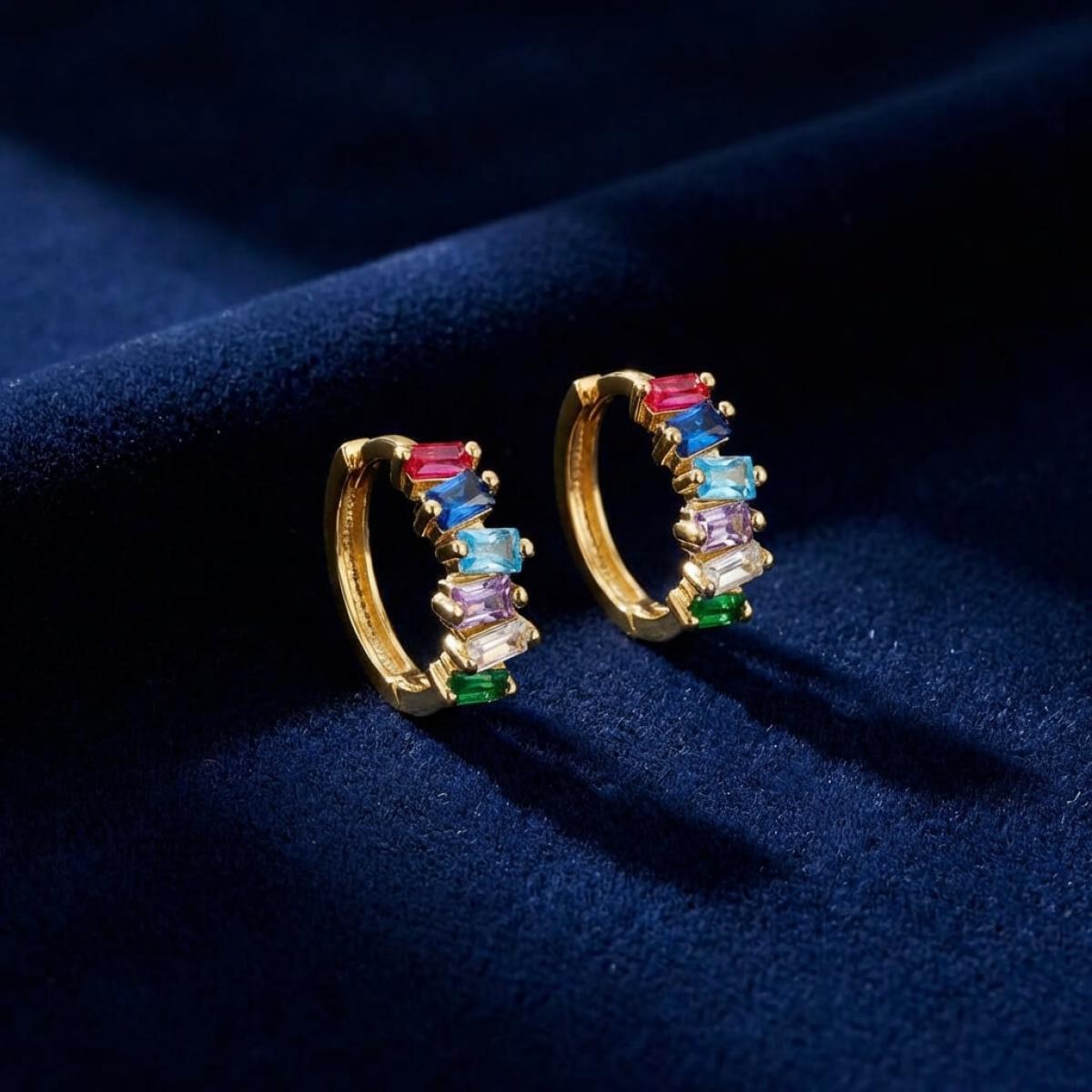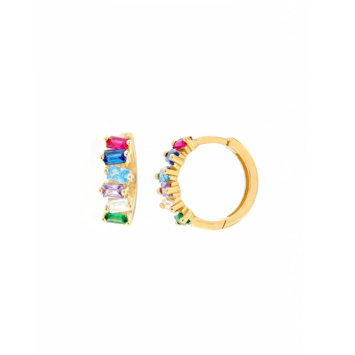 Златни обеци халки с цветни циркони