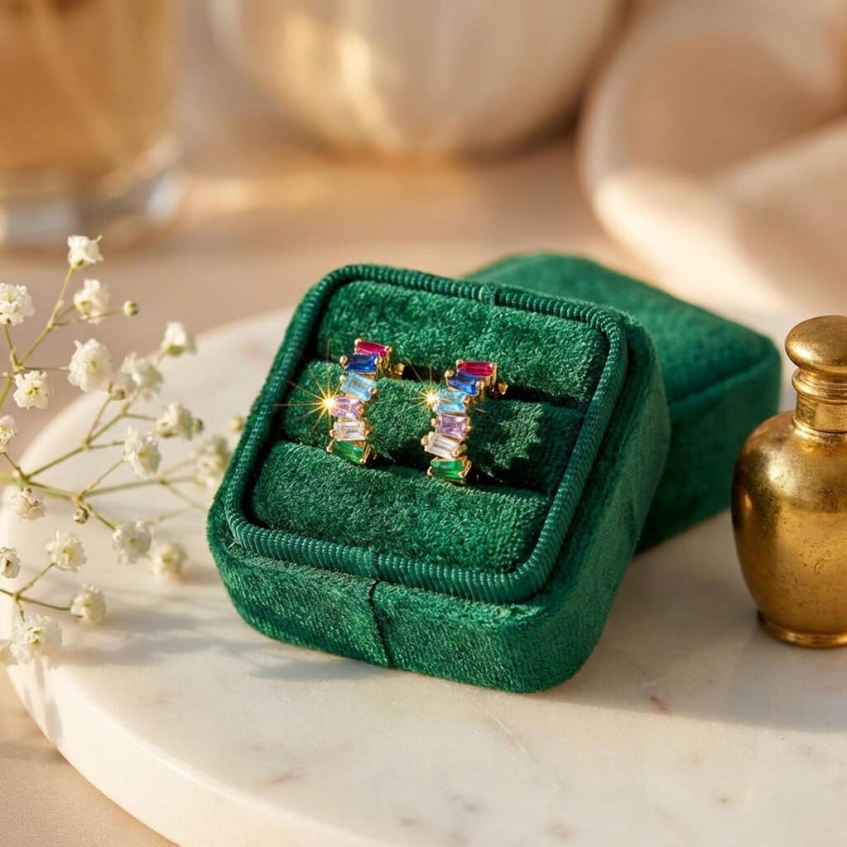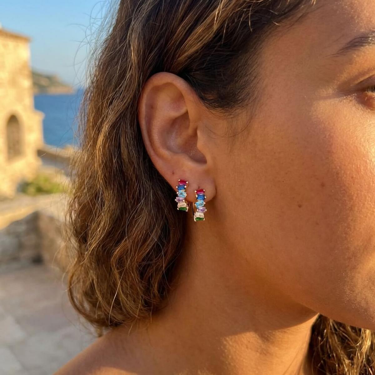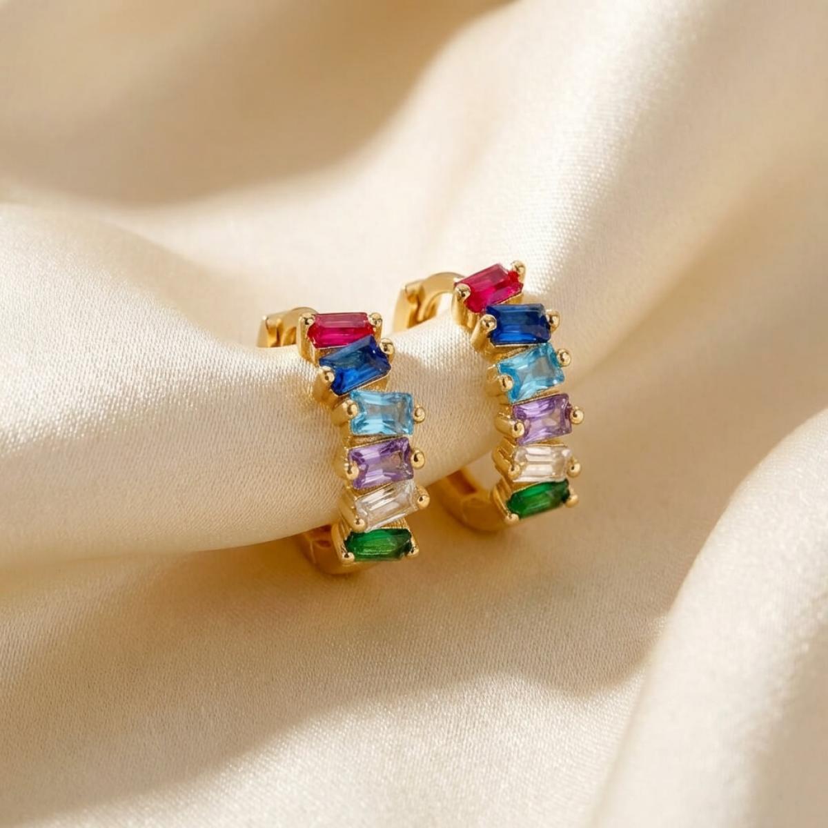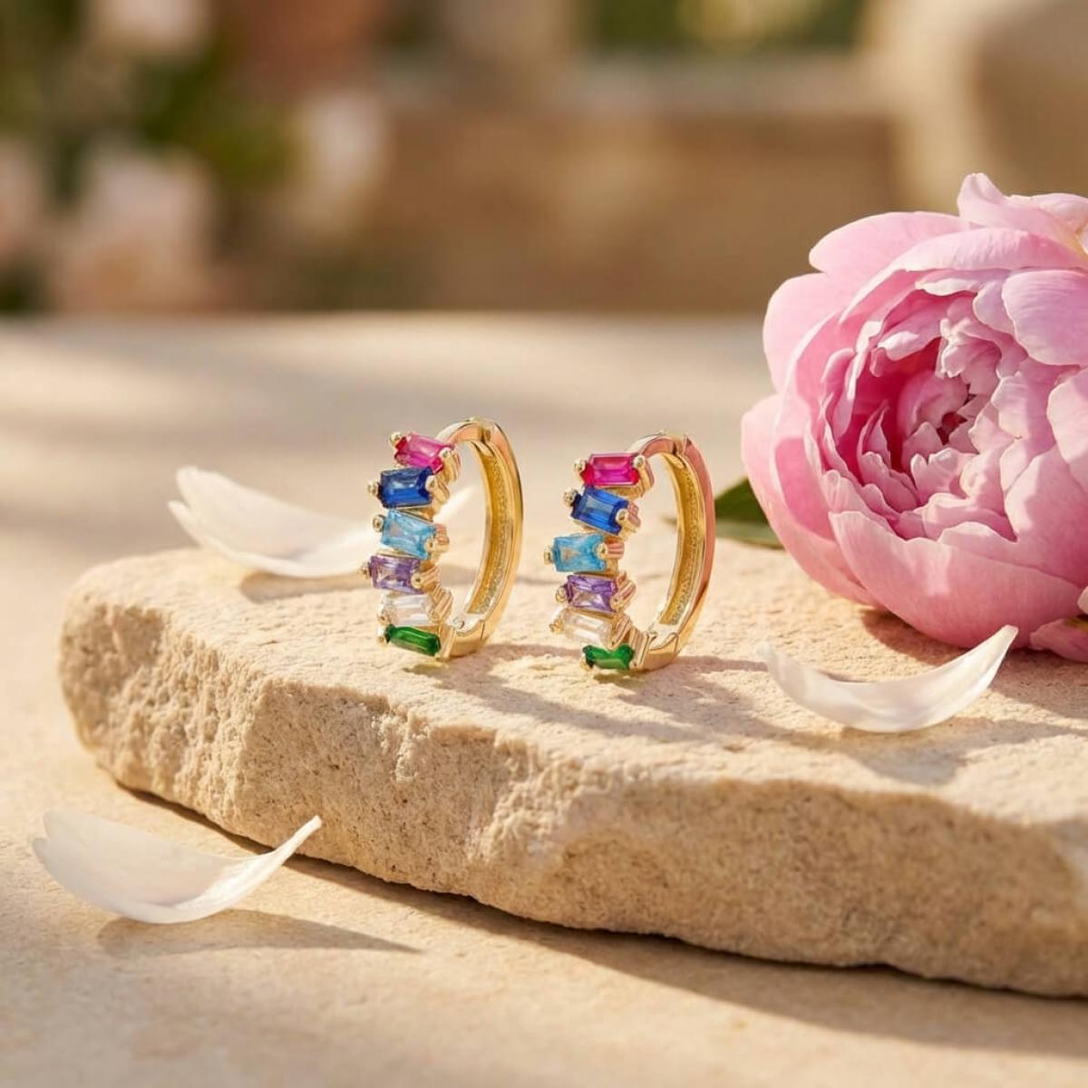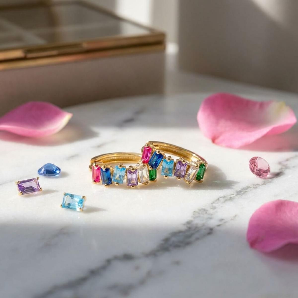 Златни обеци халки с цветни циркони