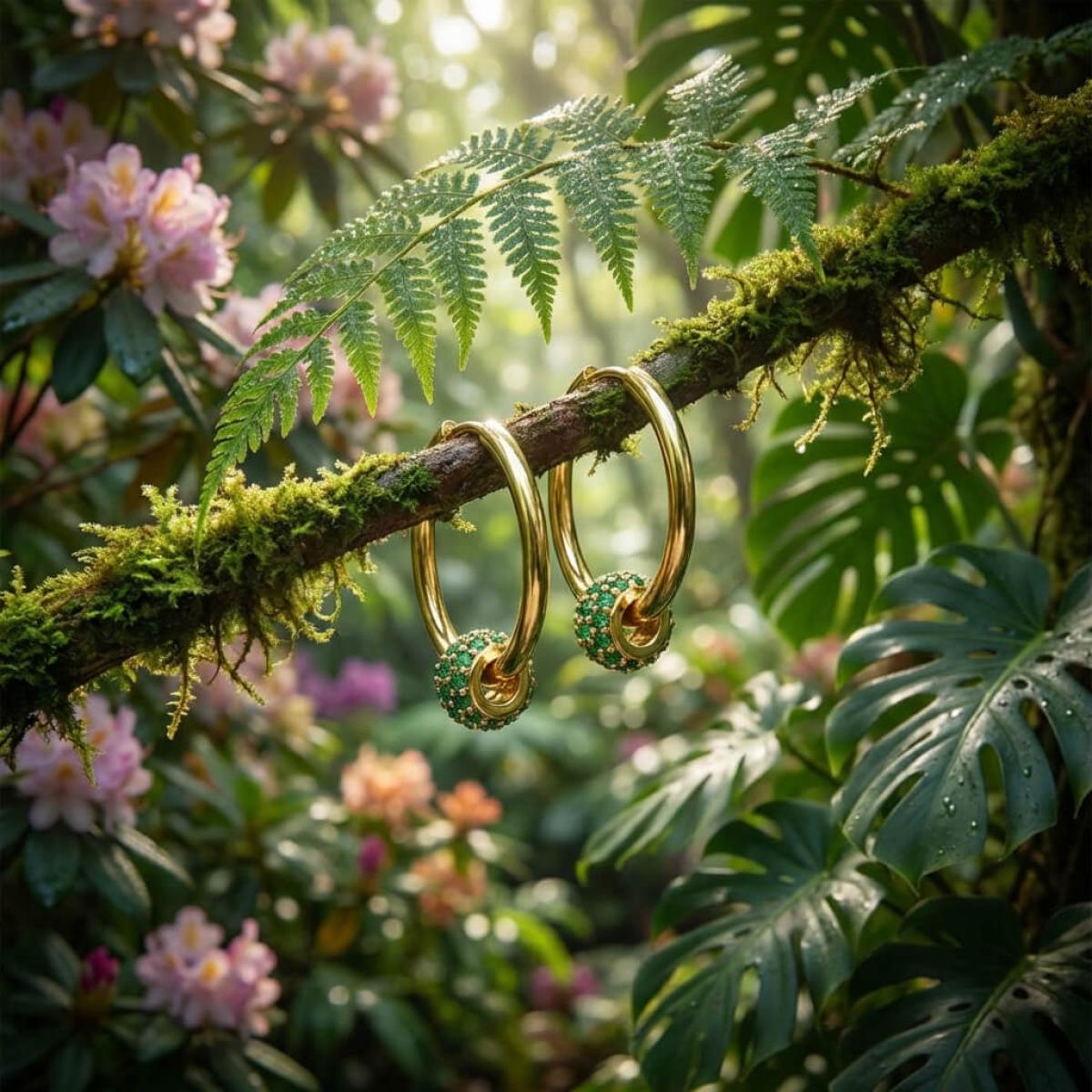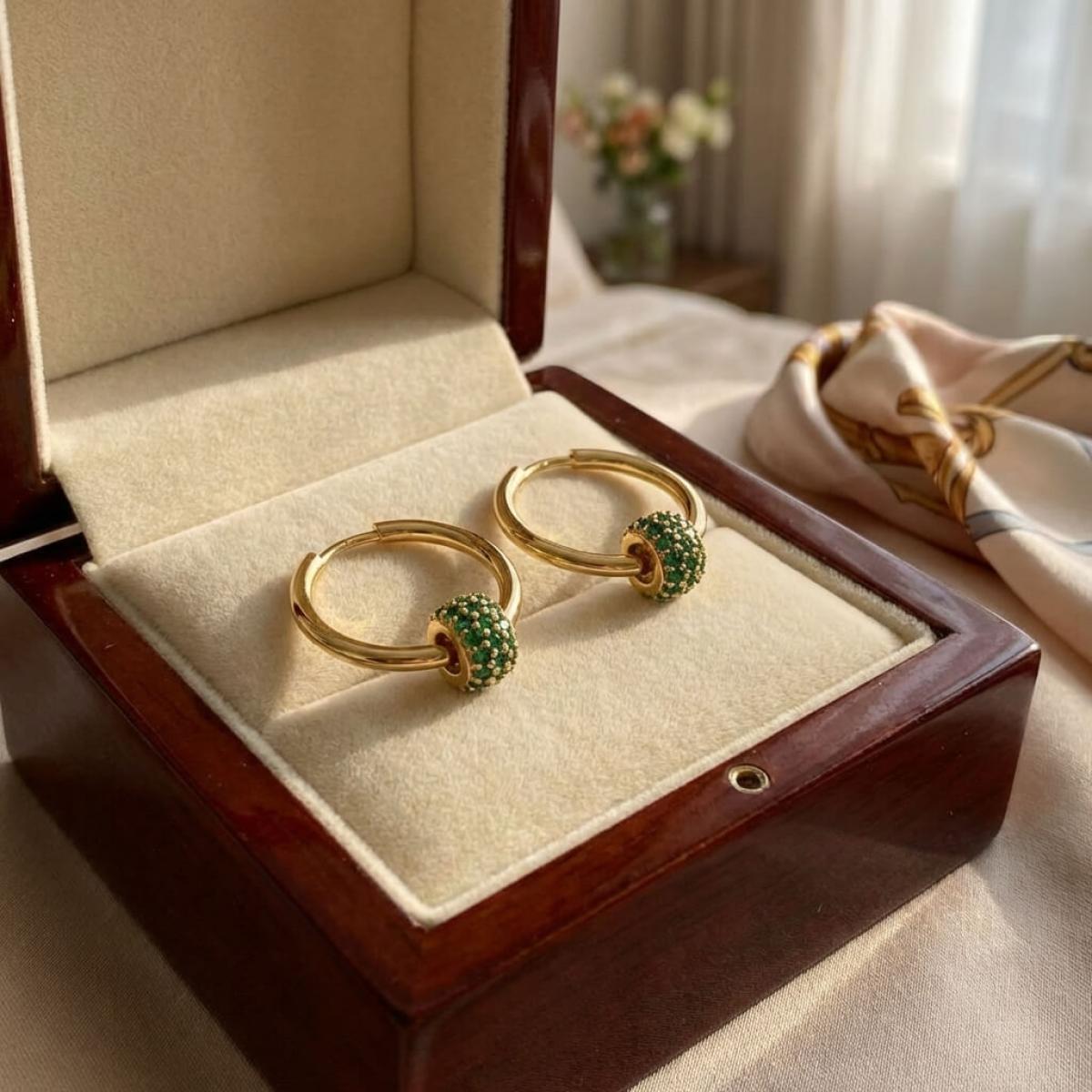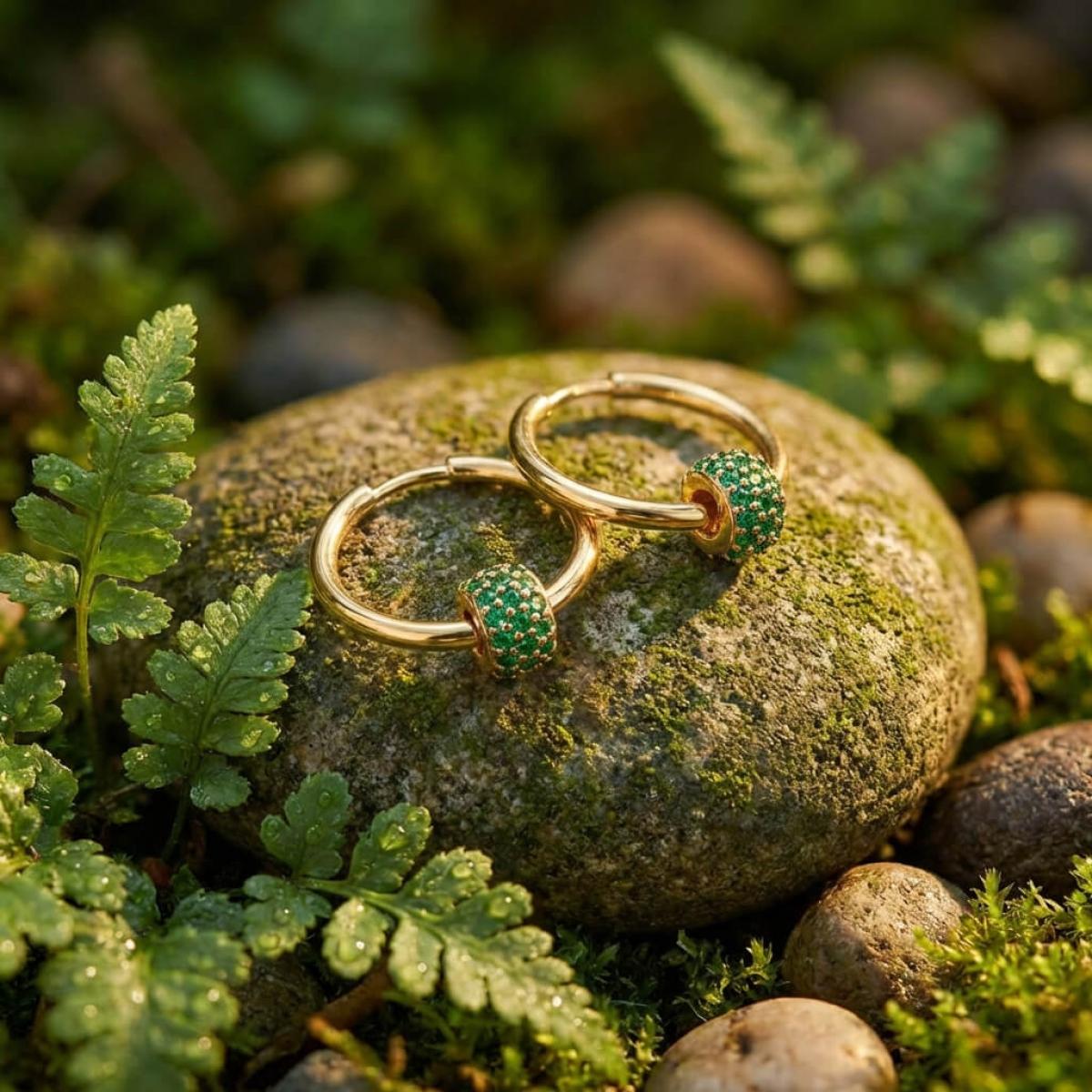 В предната част на всяка обеца са инкрустирани цветни циркони. Камъните се комбинират чудесно с класическия жълт цвят на златото. Цирконите са бюджетният аналог на диаманта, доближавайки се до неговата способност за светлопречупване.