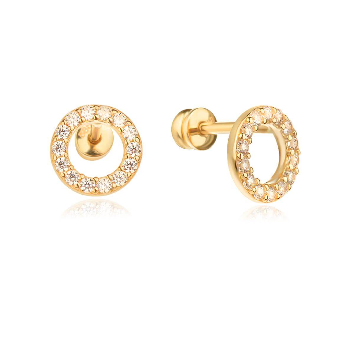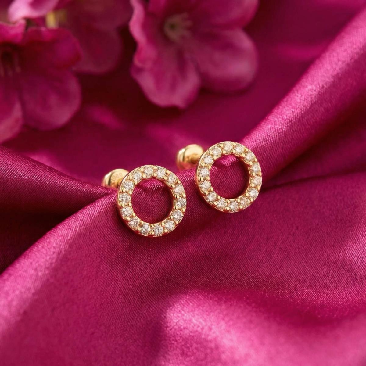 Златните обеци Карма във формата на кръг с бели циркони са изключително изящно и стилно бижу, което придава изискан завършек на всяка визия.