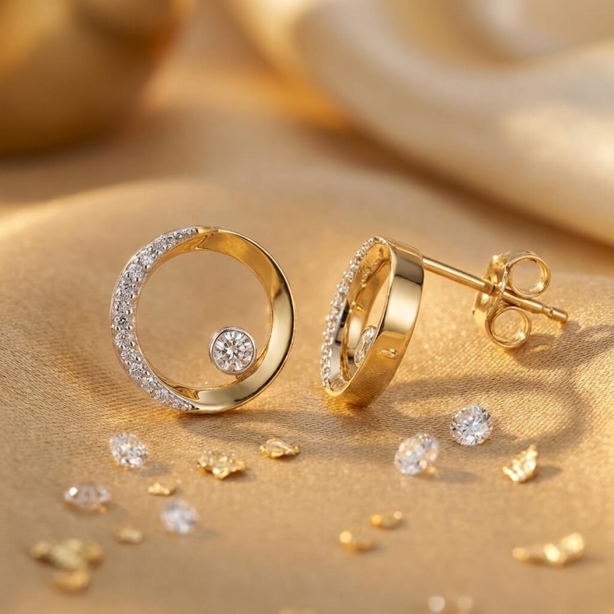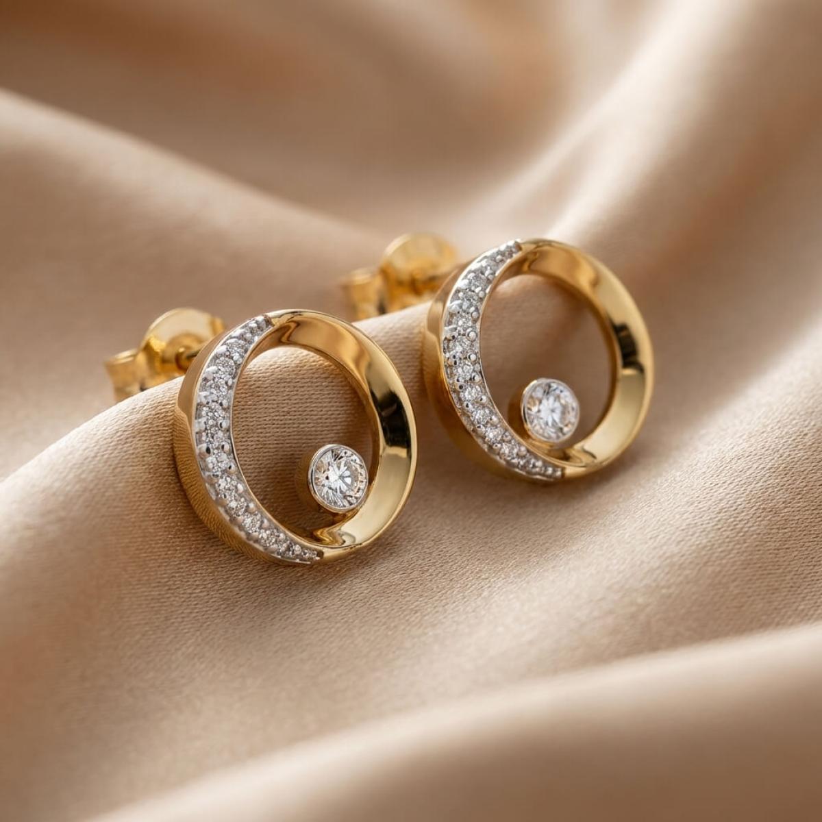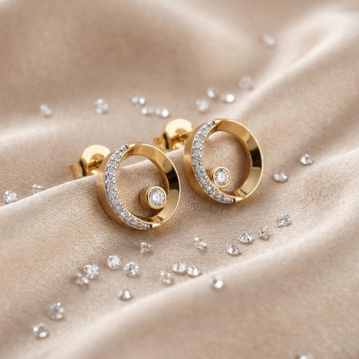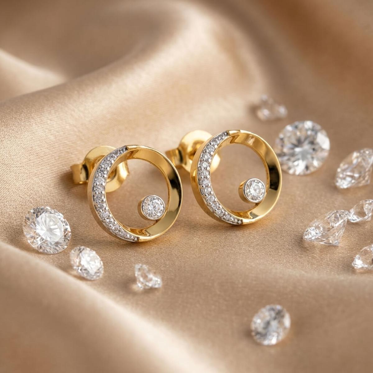 Златни обеци с перфектно шлифовани диаманти.