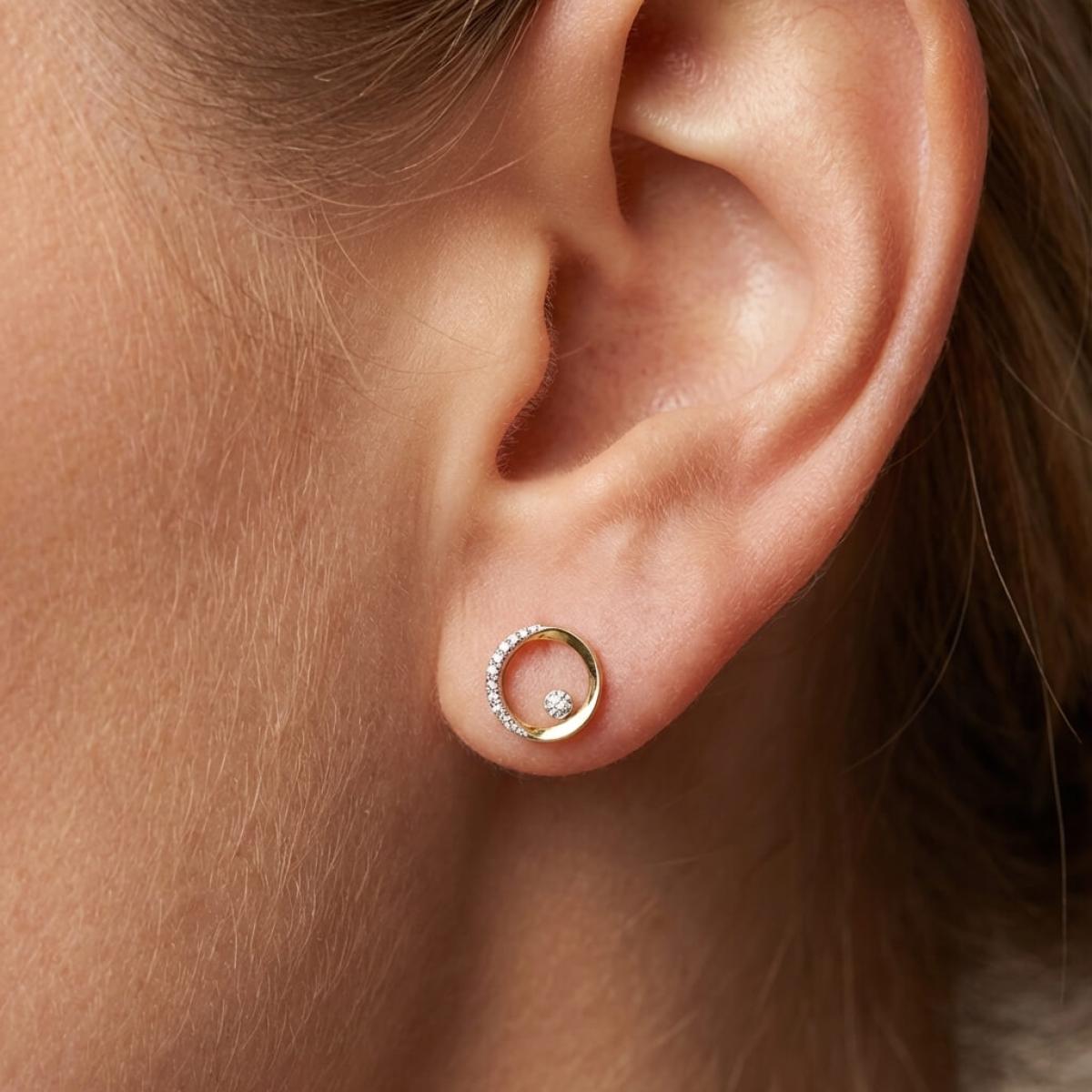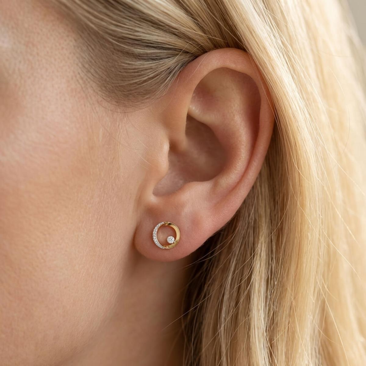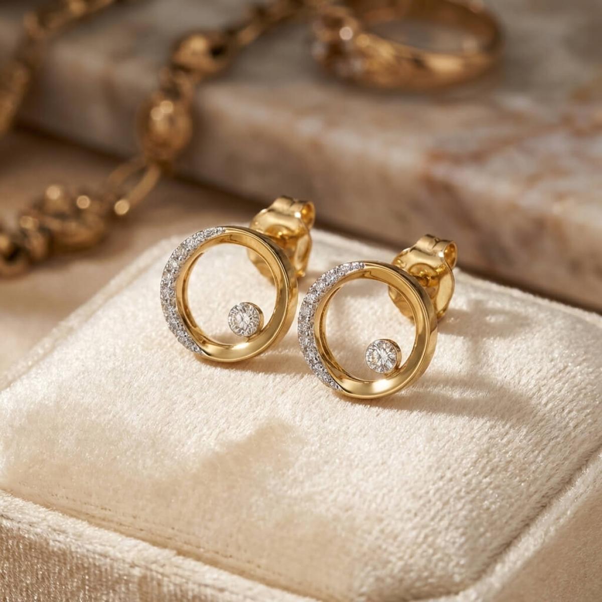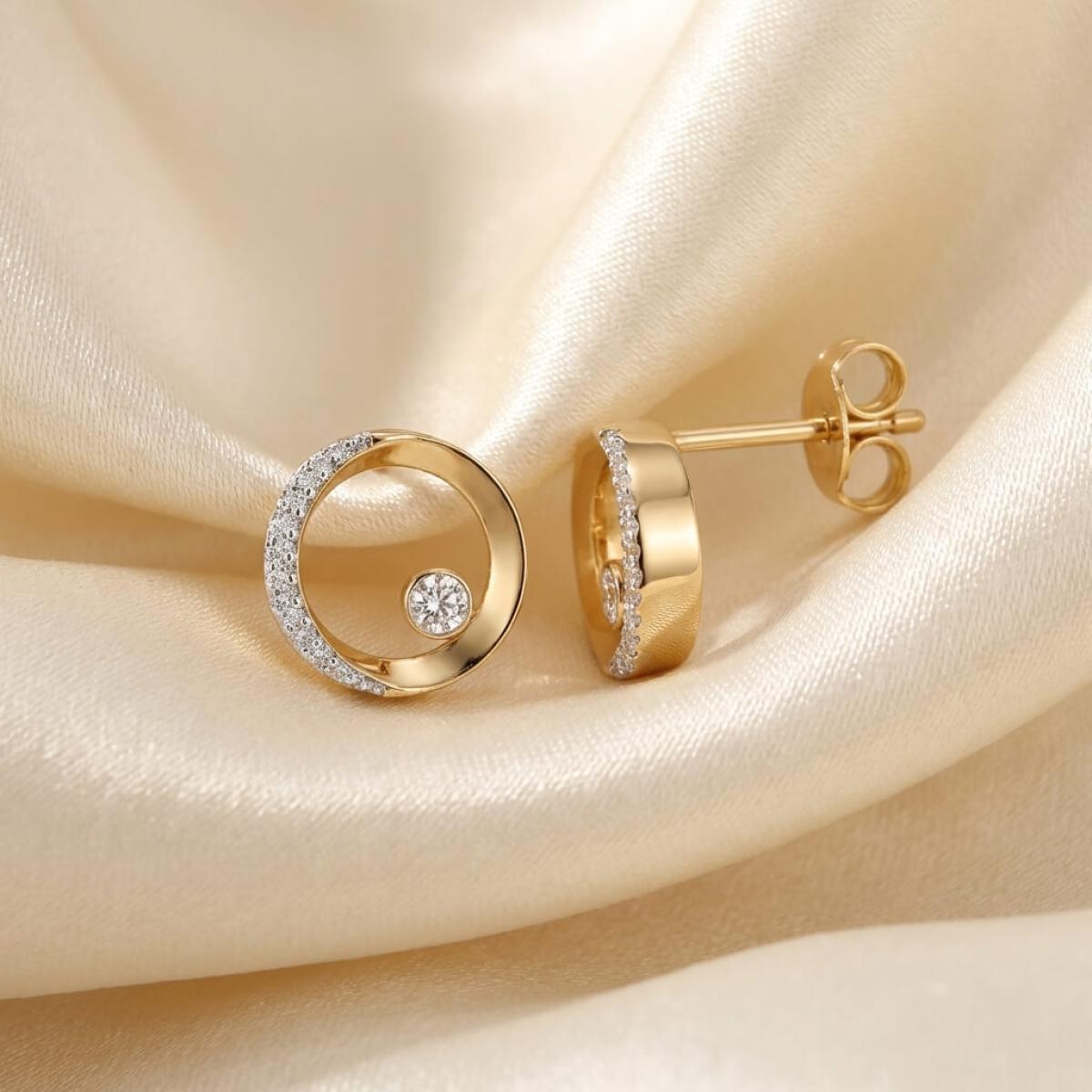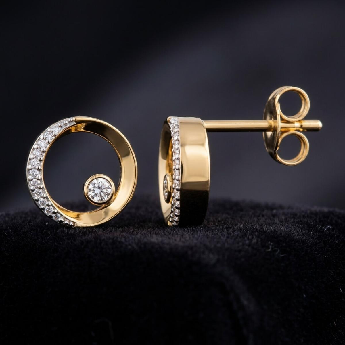 Златни обеци с перфектно шлифовани диаманти.