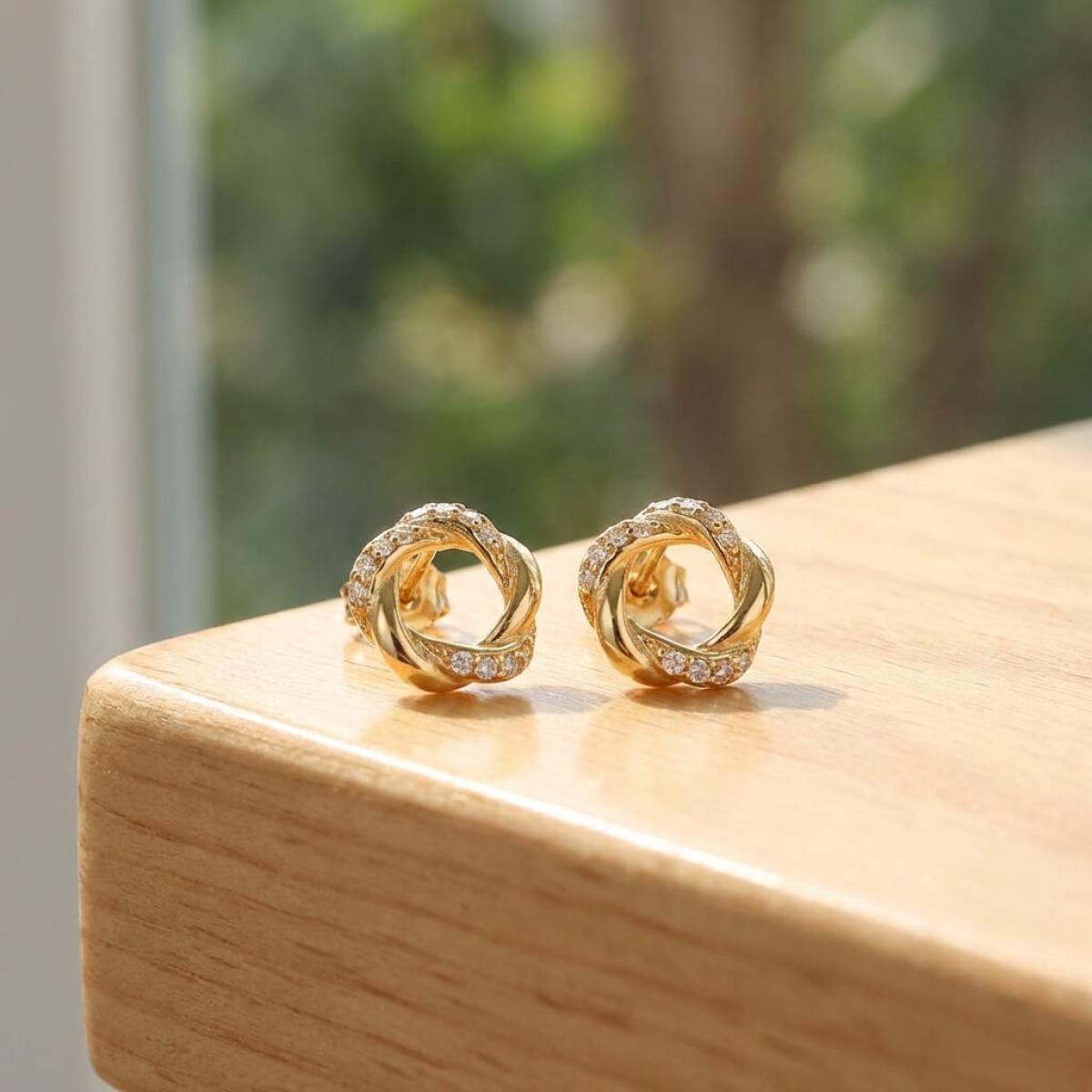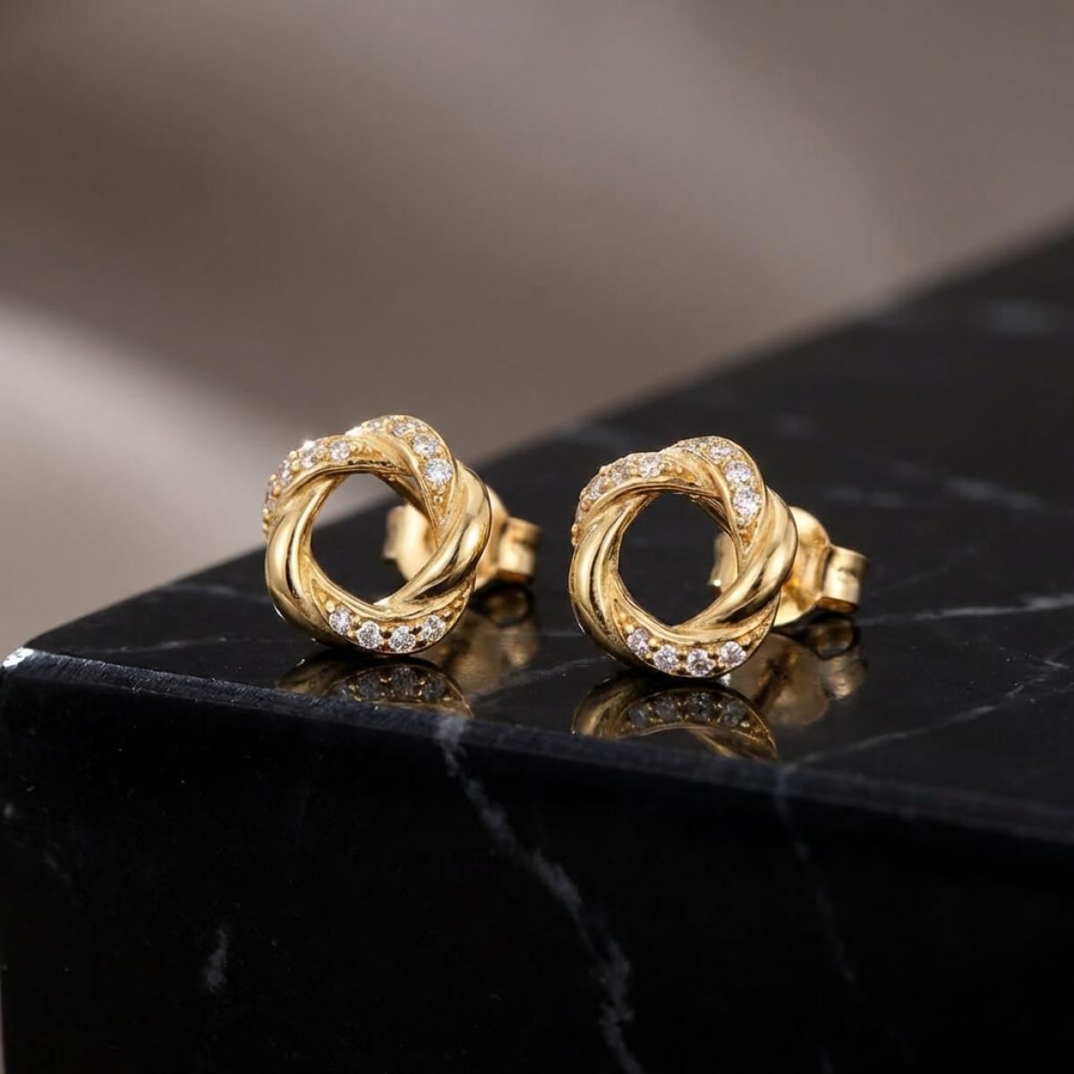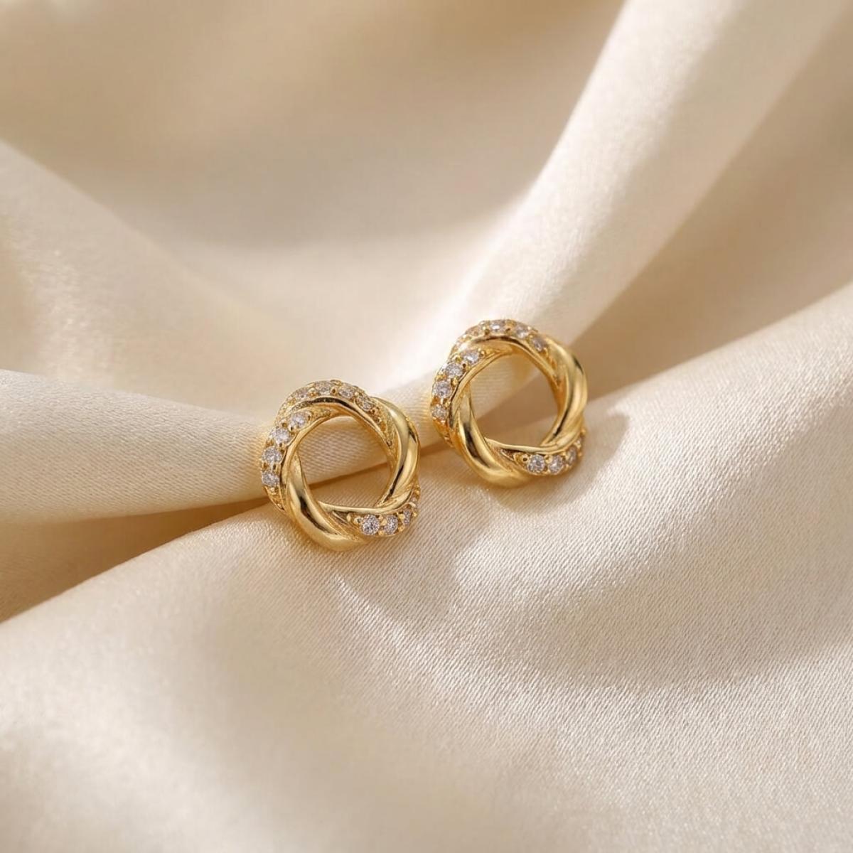 Прекрасни златни обеци с инкрустирани циркони