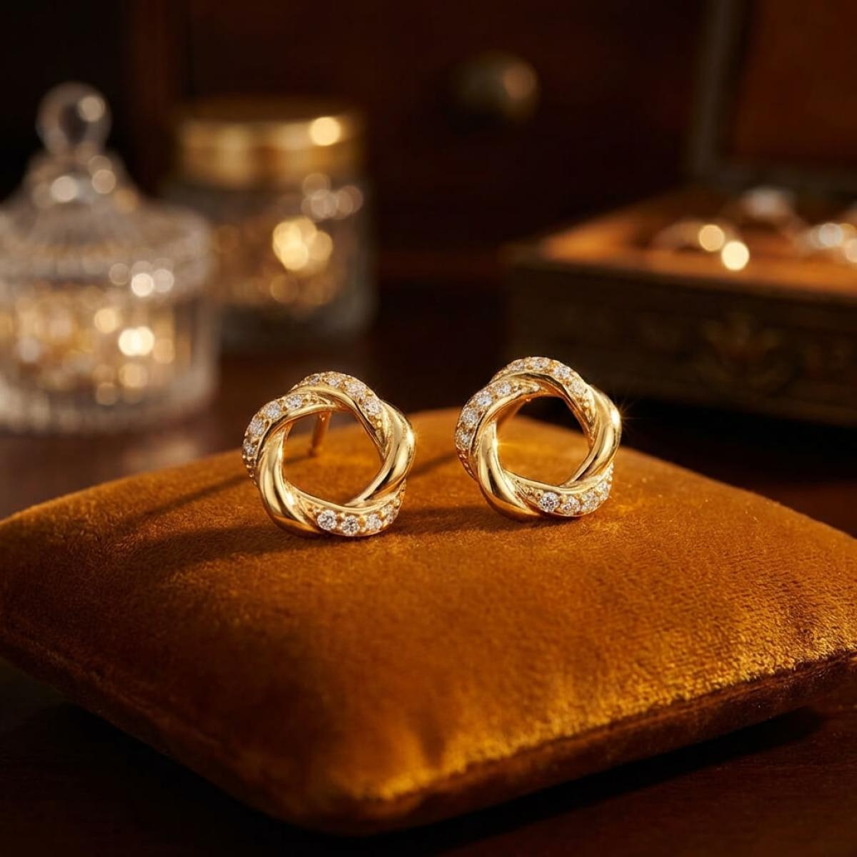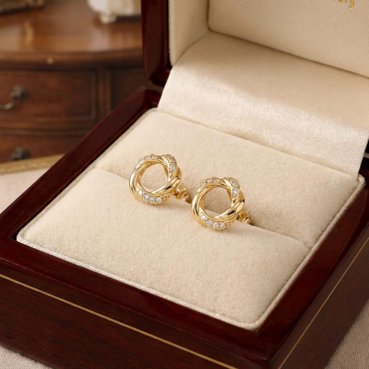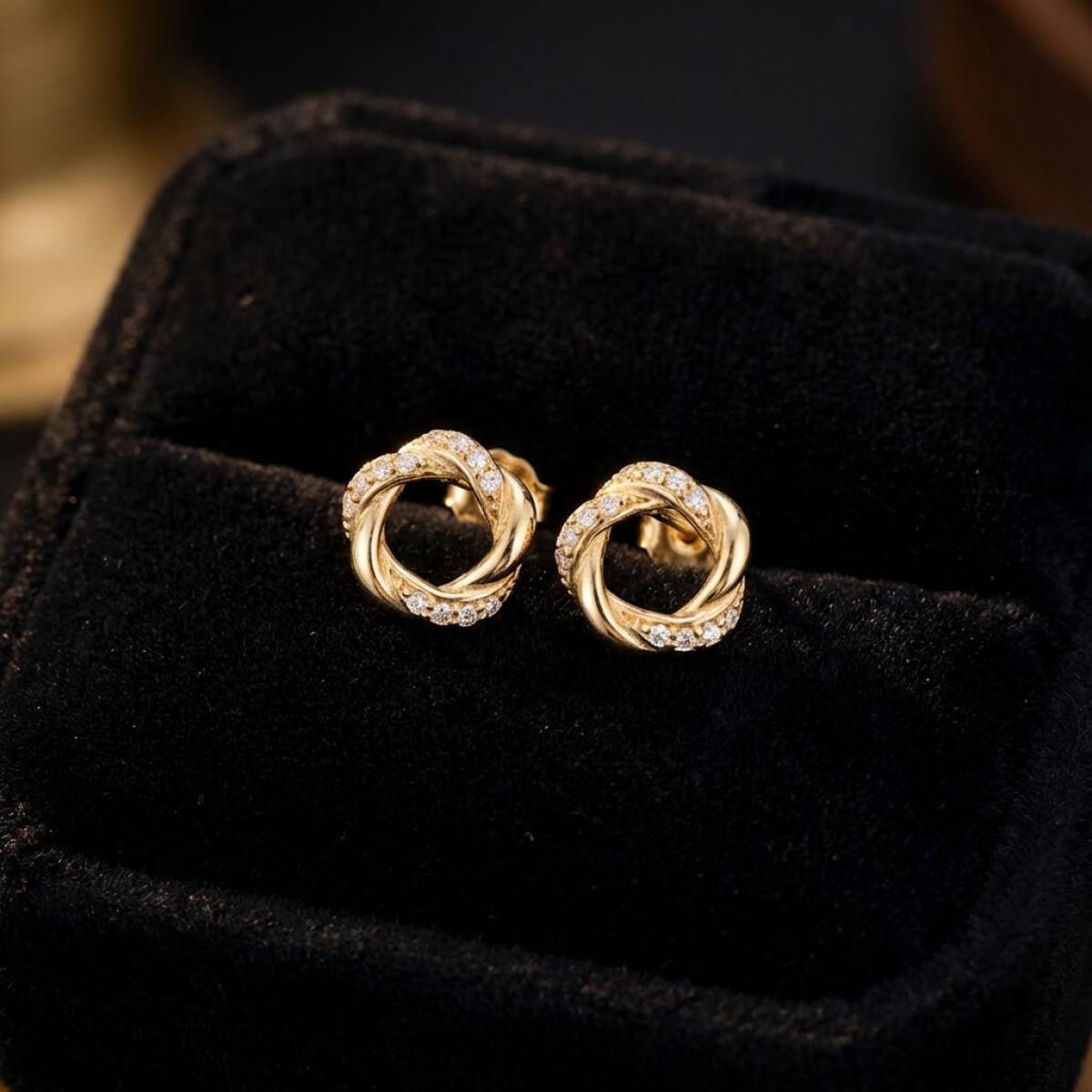 Прекрасни златни обеци с инкрустирани циркони