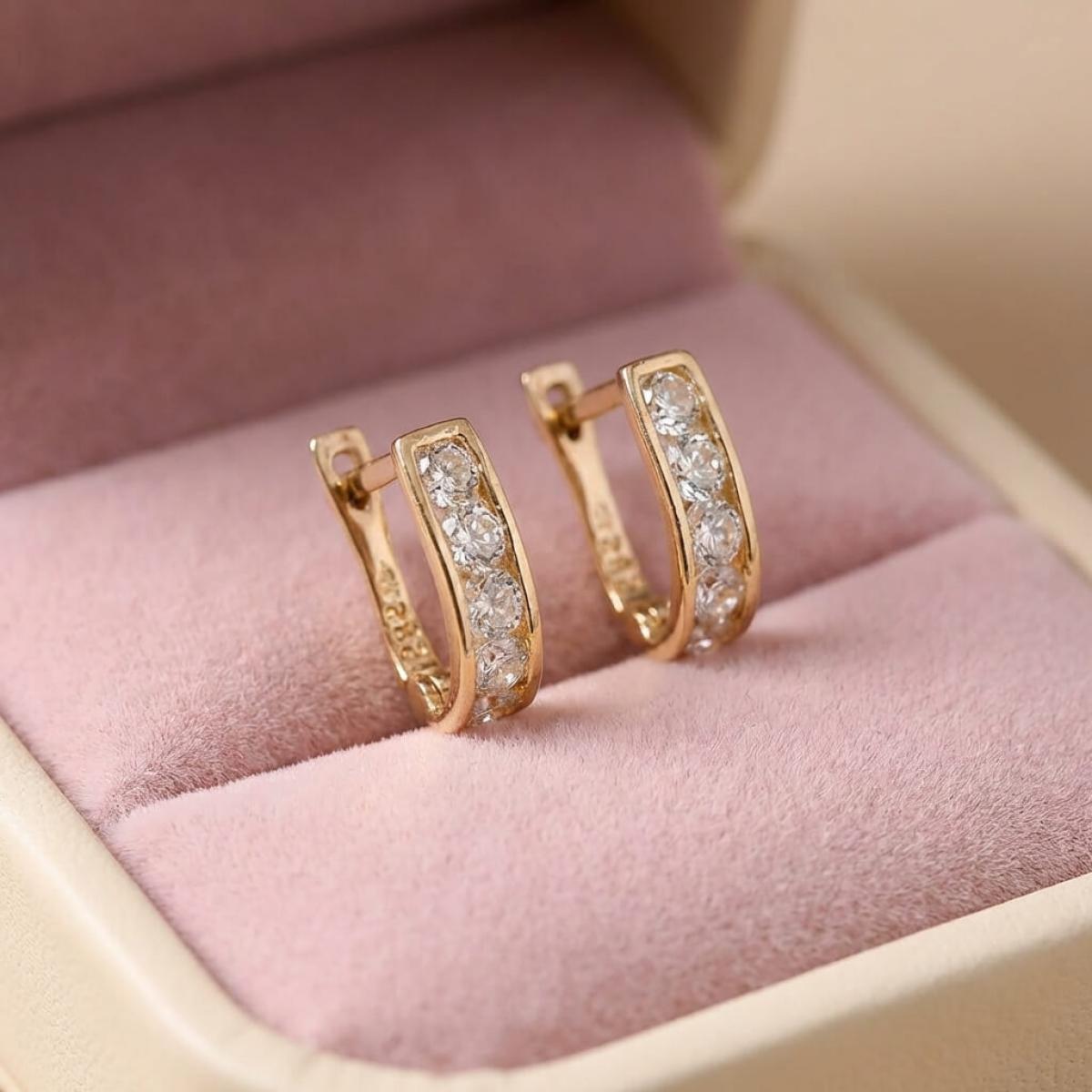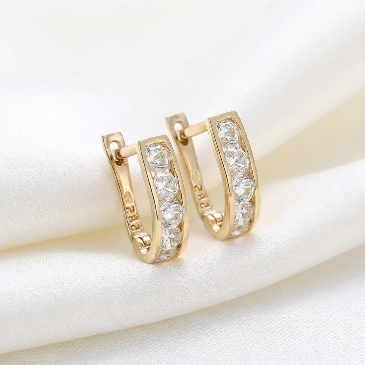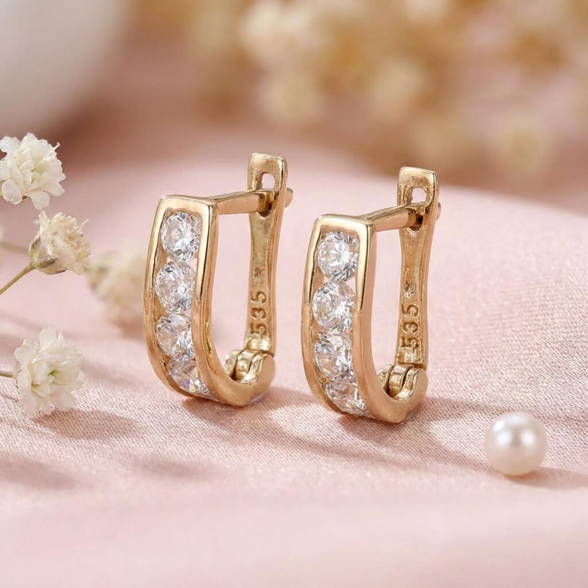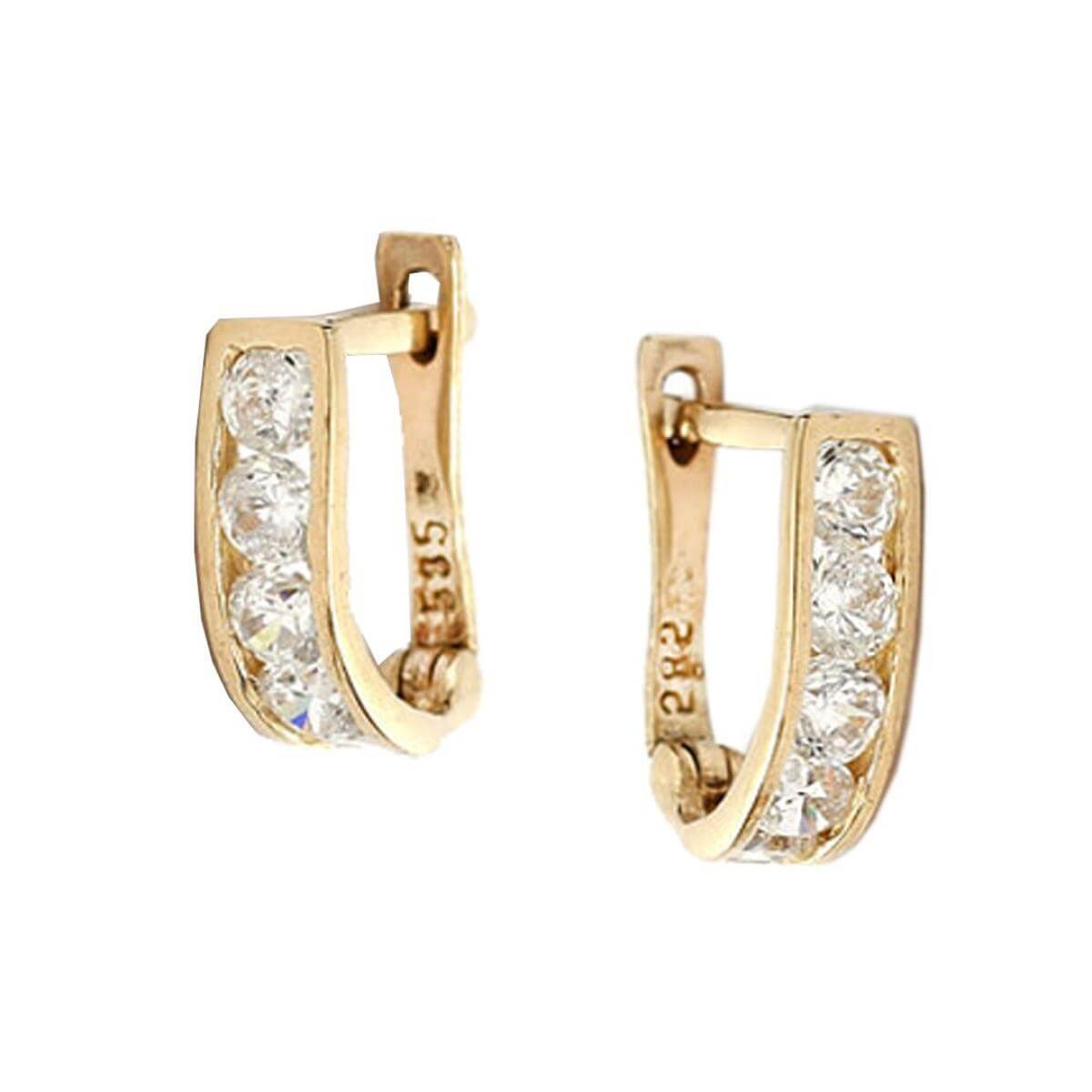 Златни обеци с бели циркони