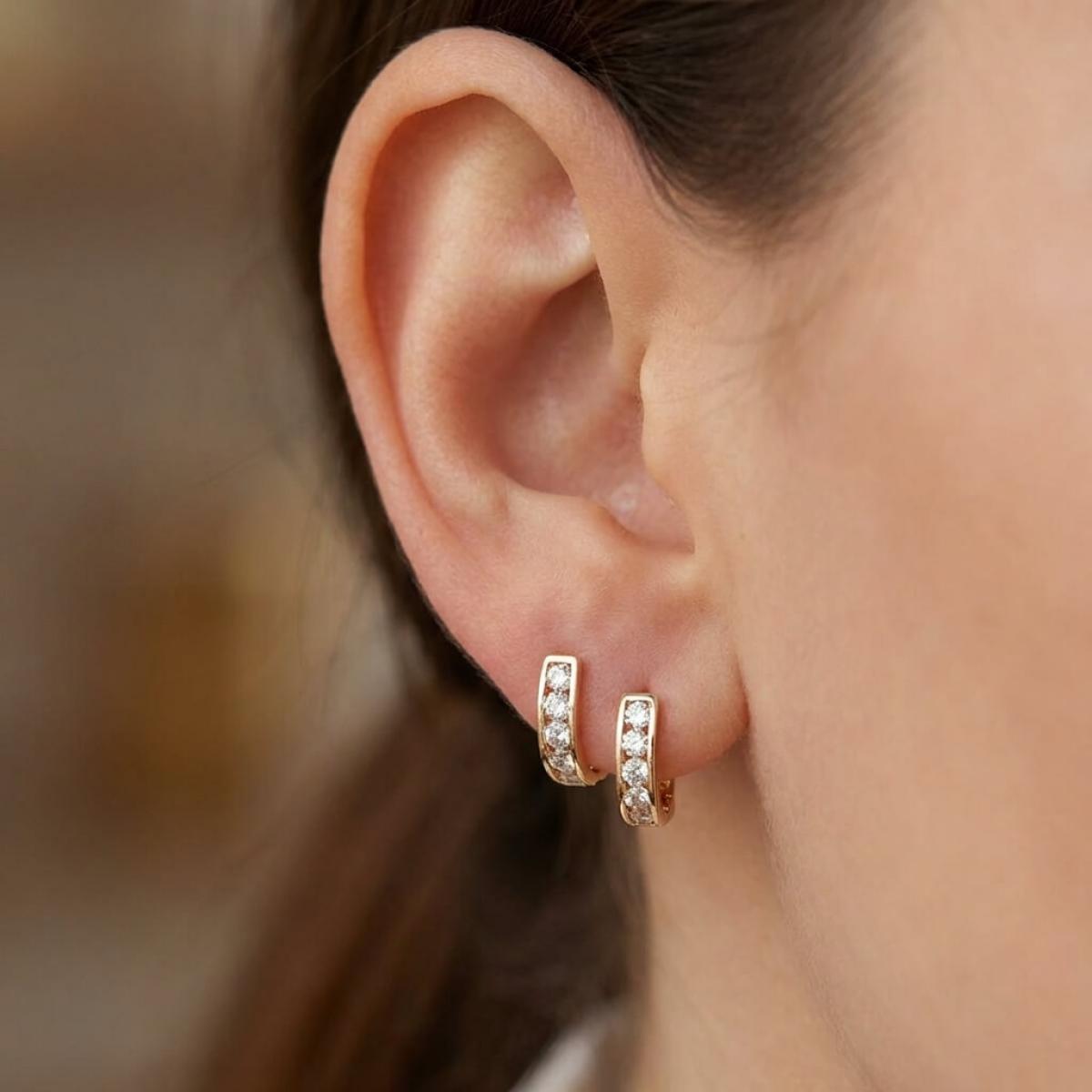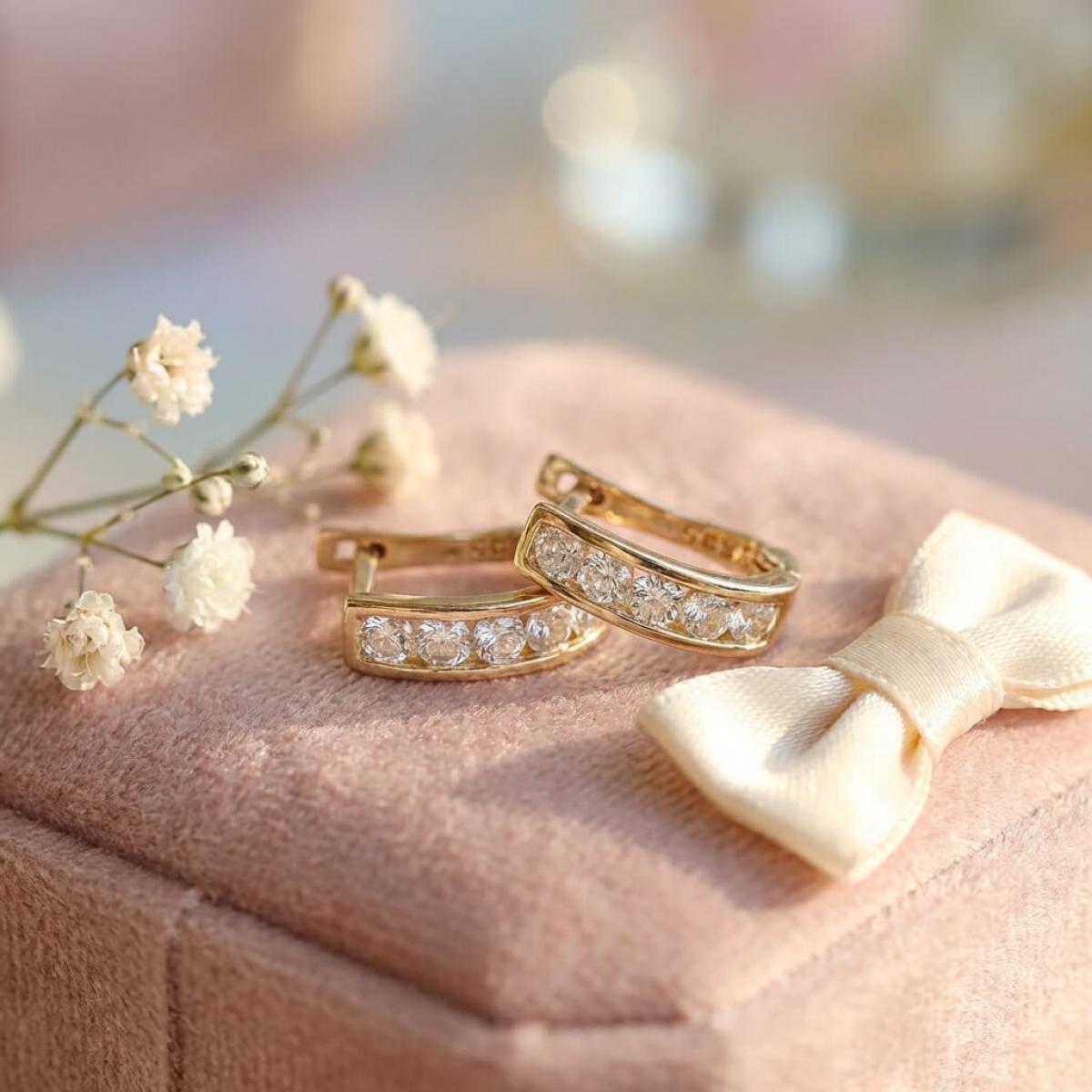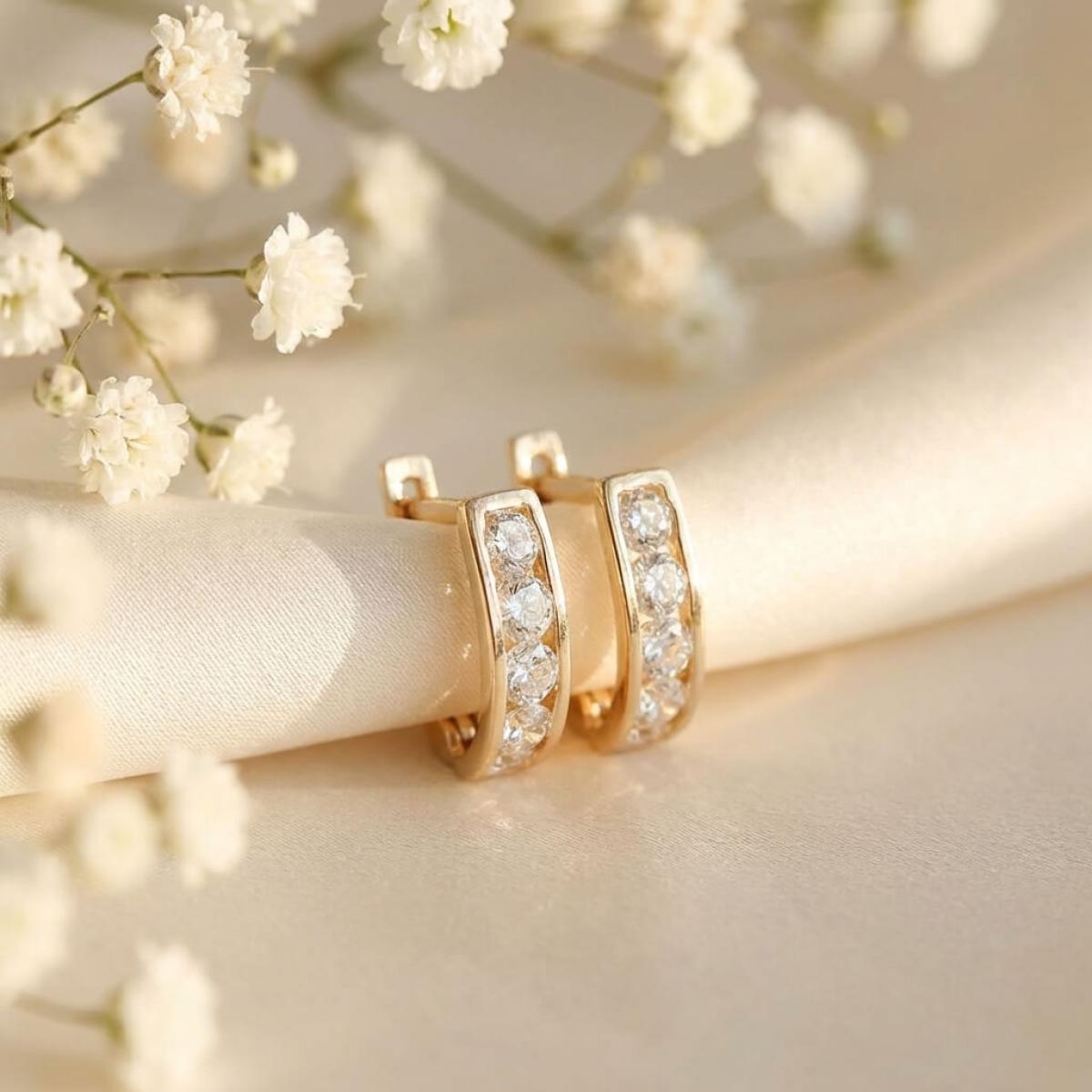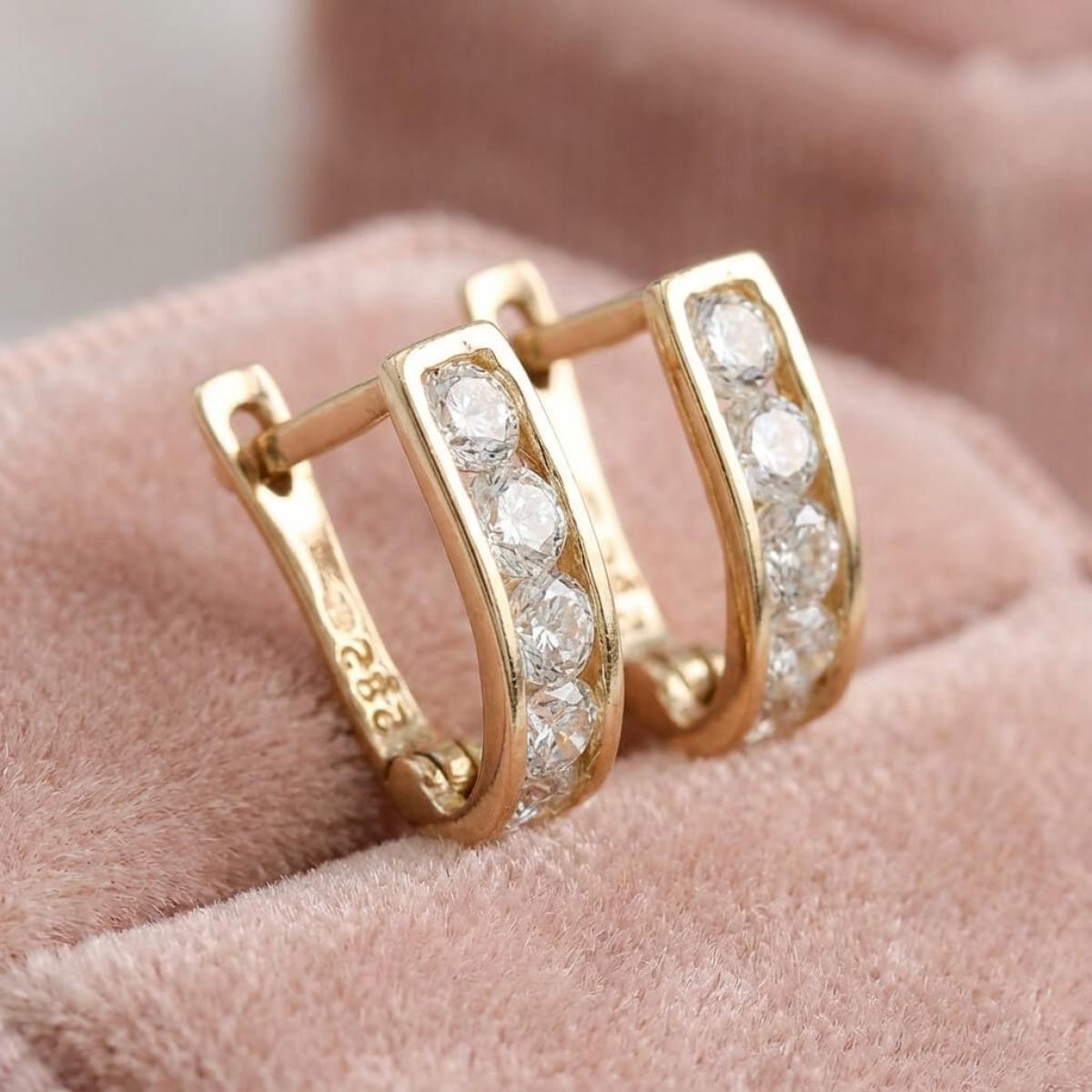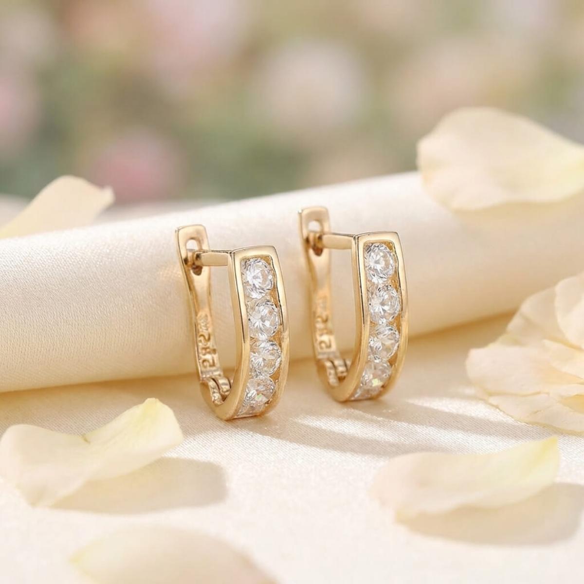 Златни обеци с бели циркони