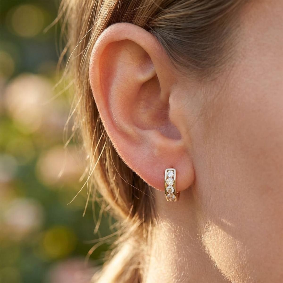 Златни обеци с бели циркони-11мм