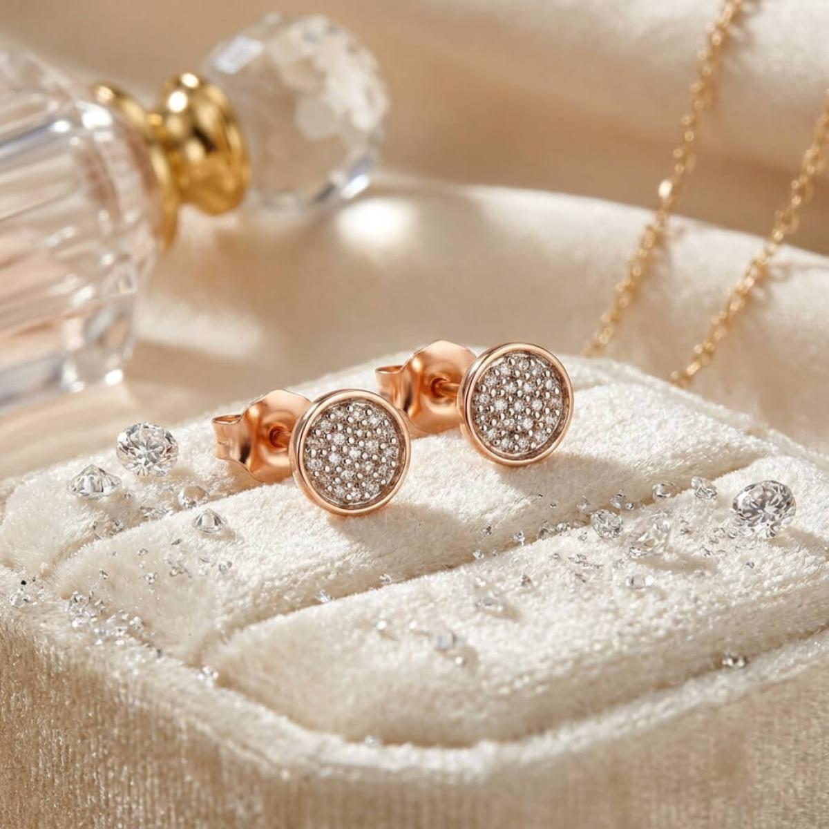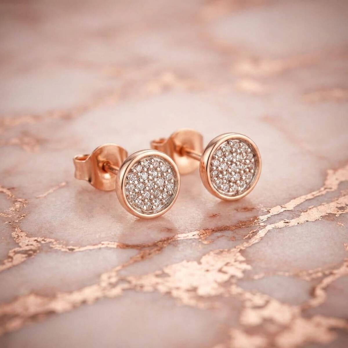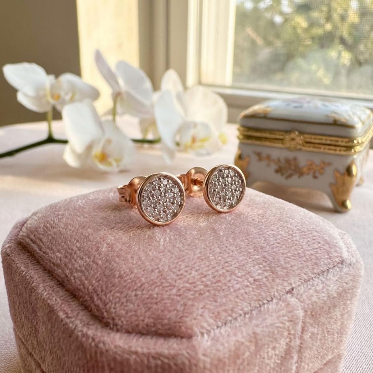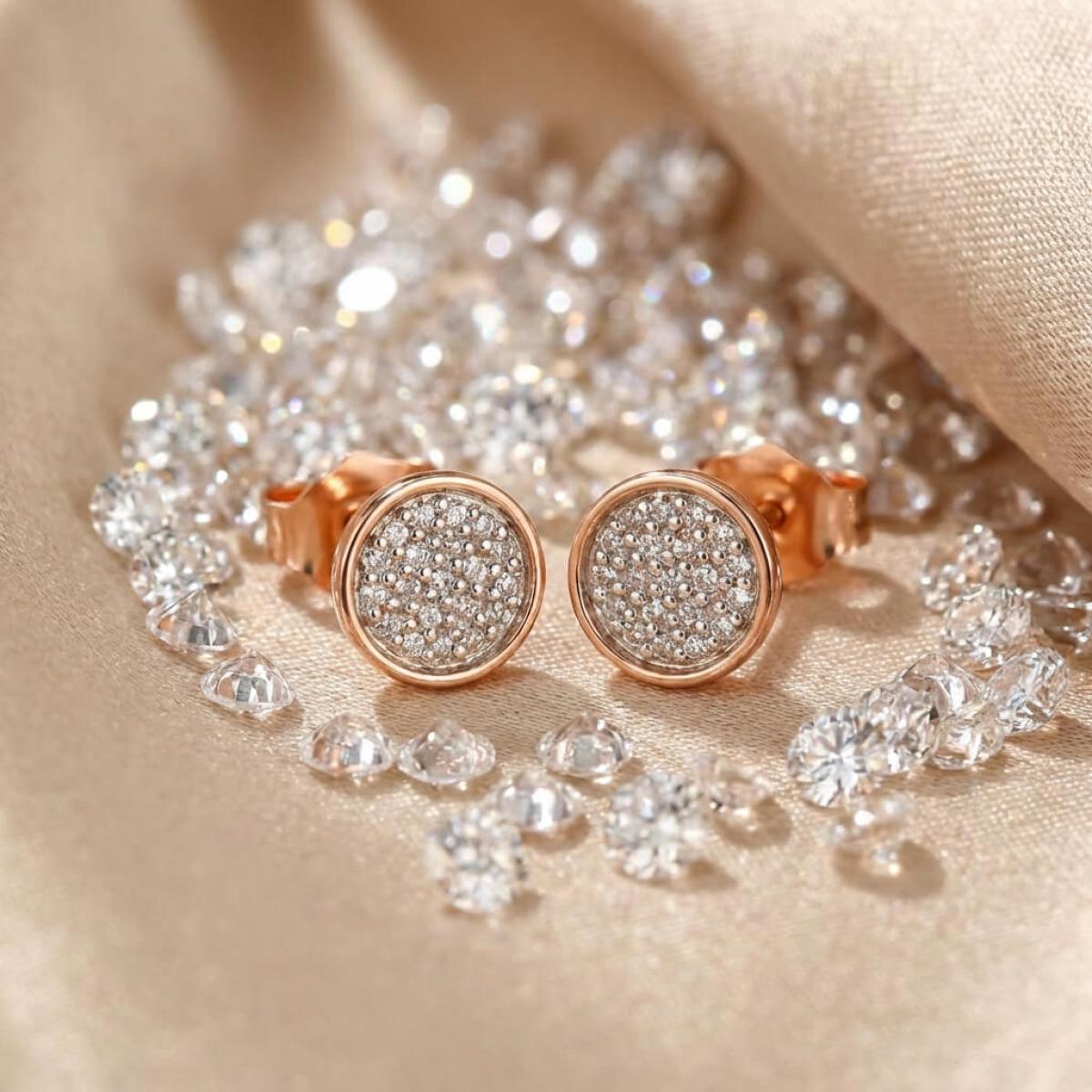 Златни обеци с перфектно шлифовани диаманти.