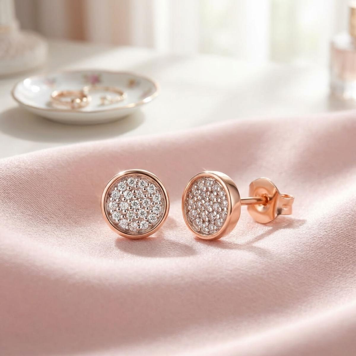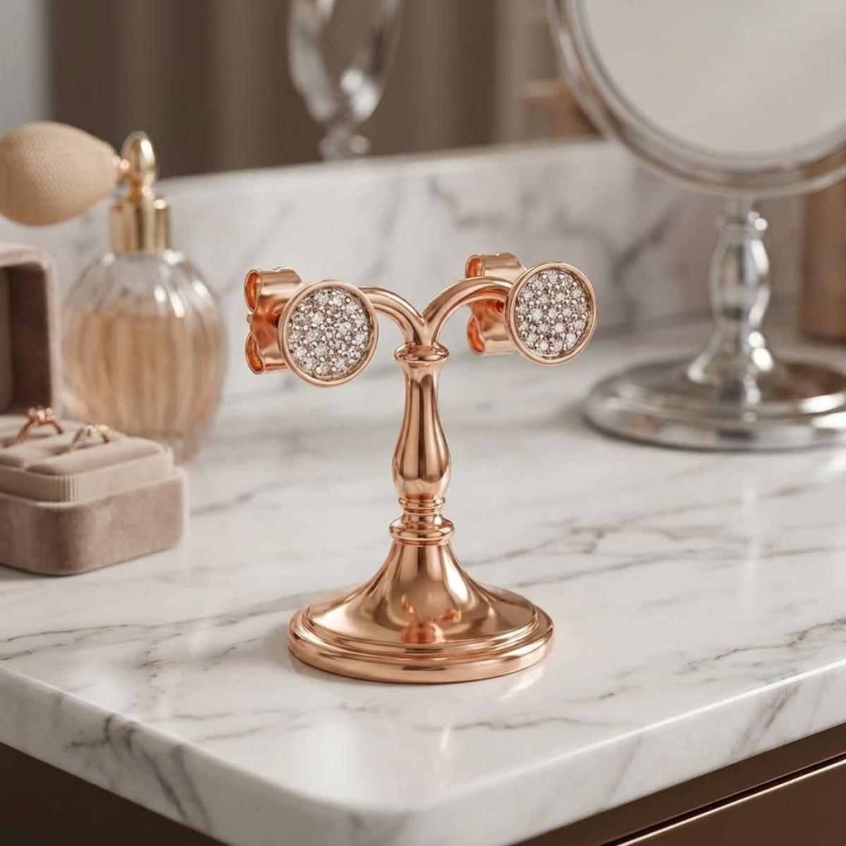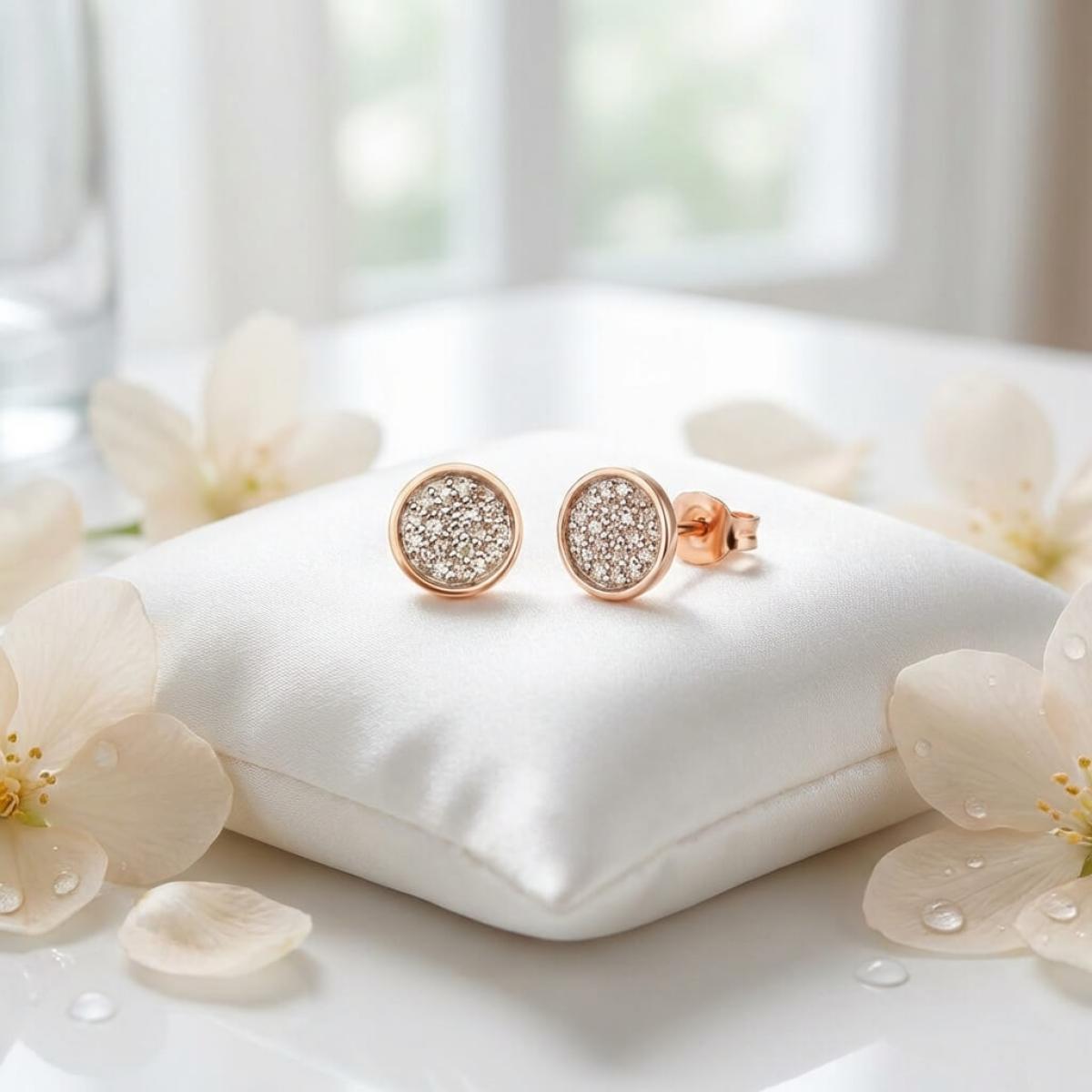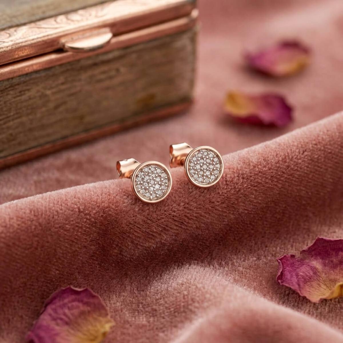 Златни обеци с перфектно шлифовани диаманти.