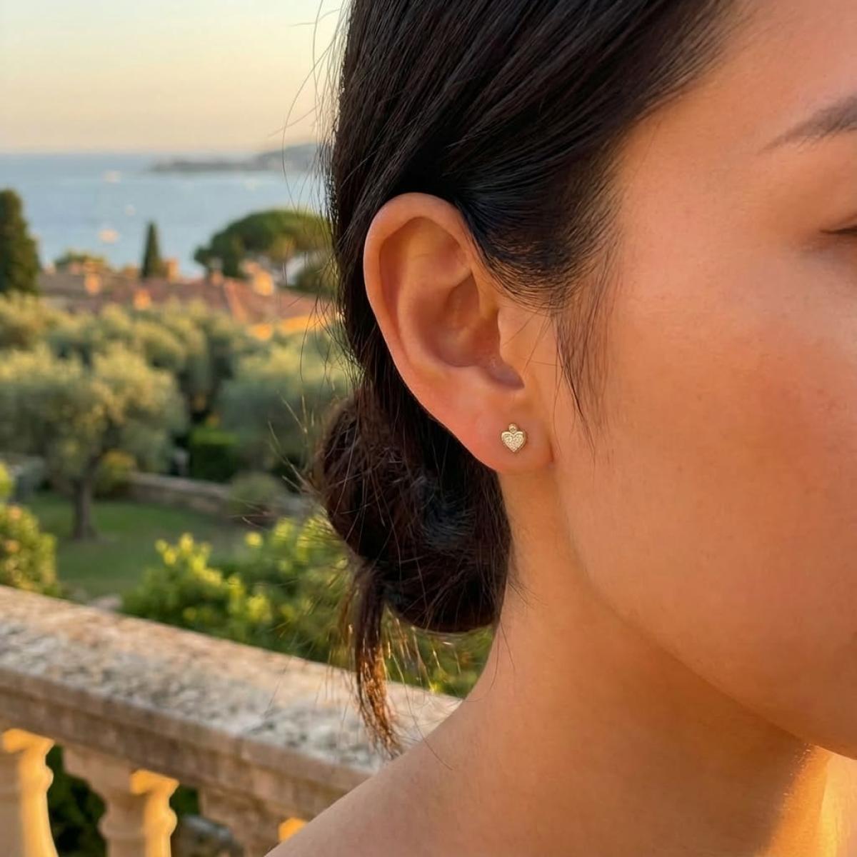 Златни обеци с перфектно шлифовани диаманти.