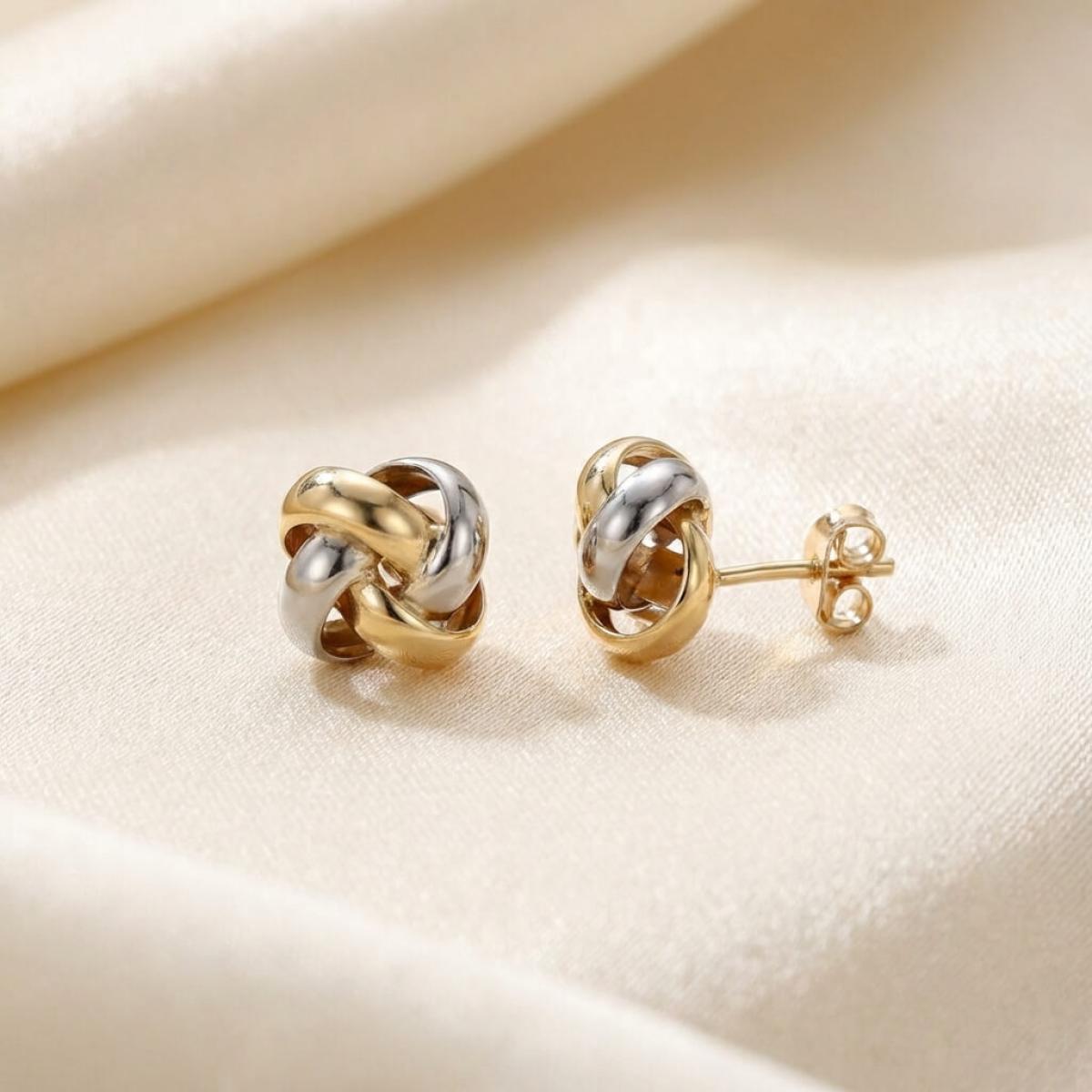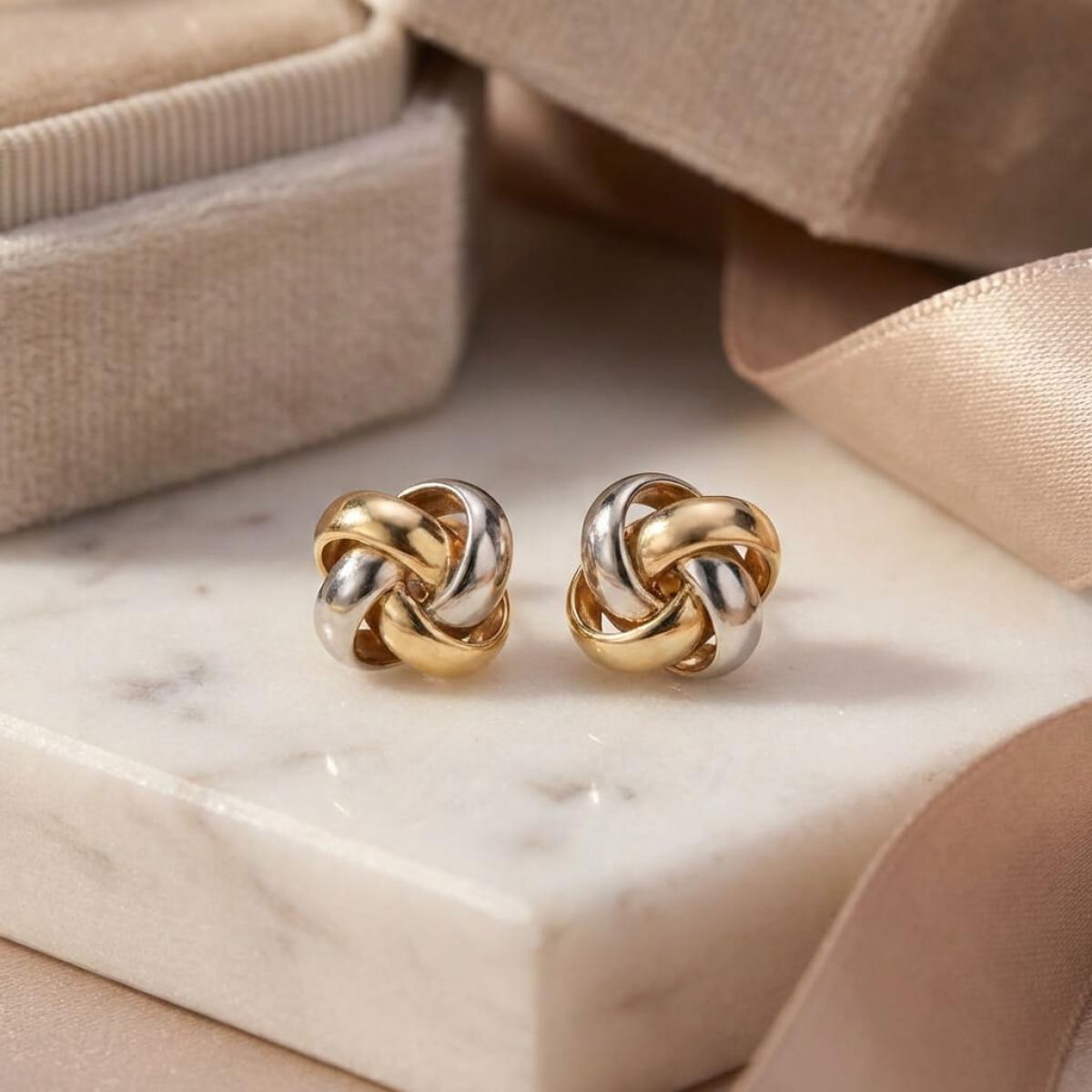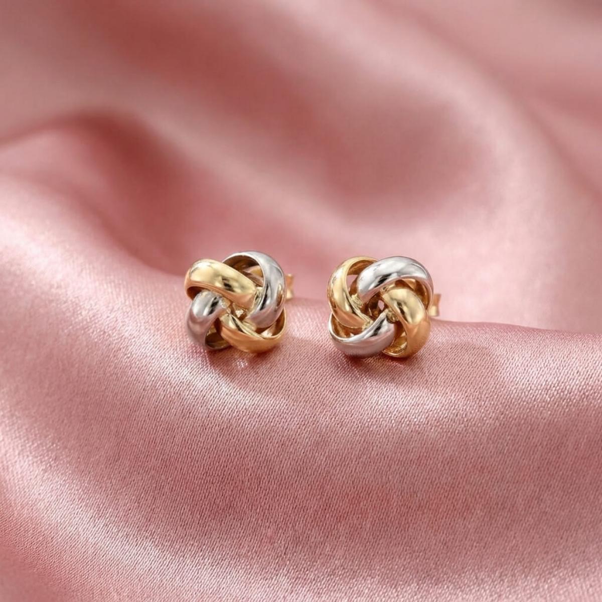 Златни обеци Възелчета с бяло и жълто злато пр.585