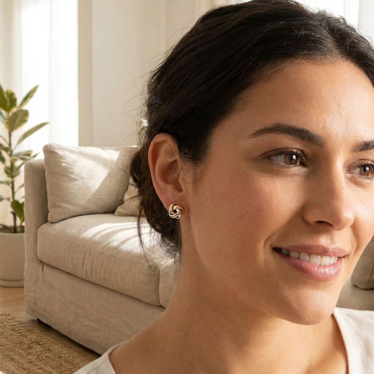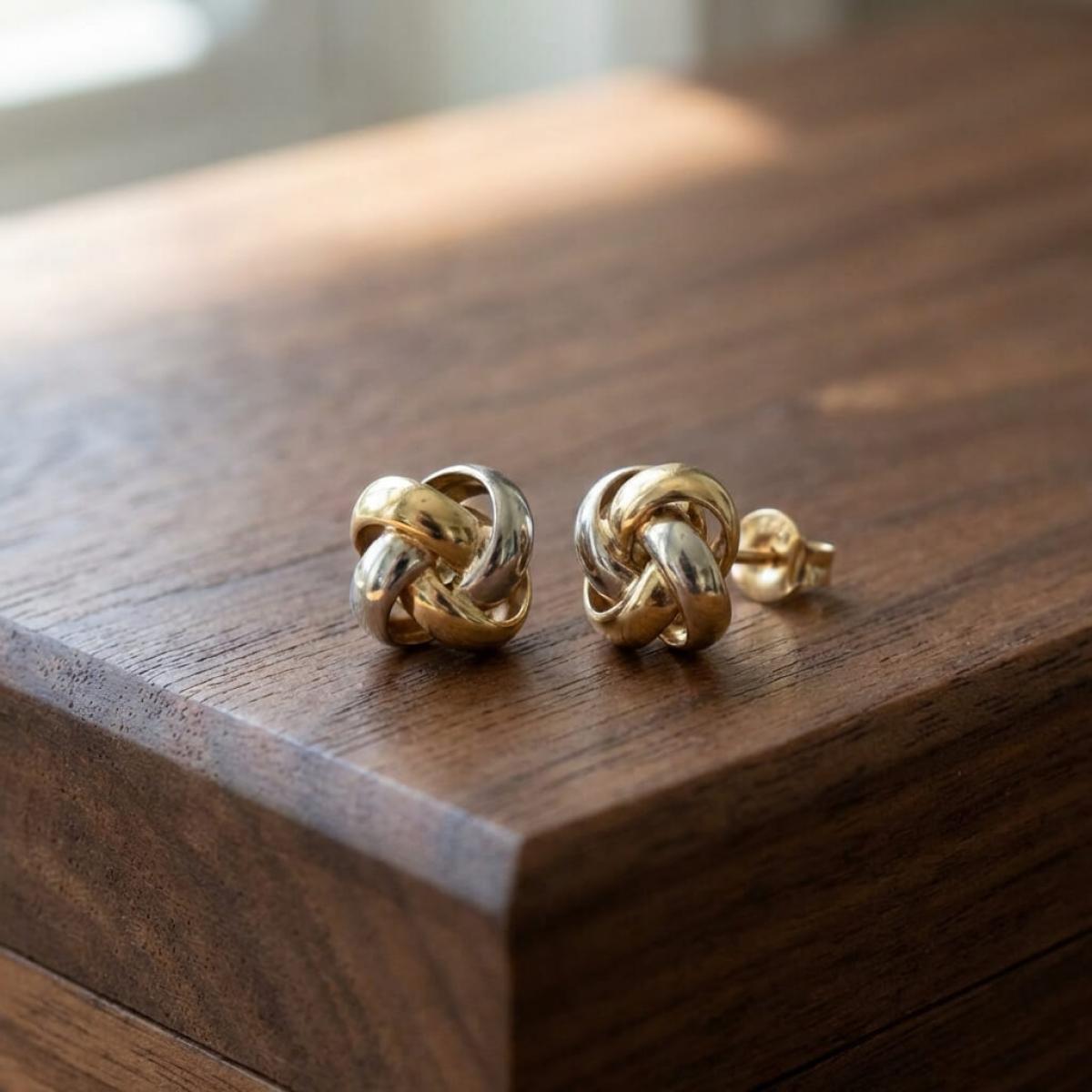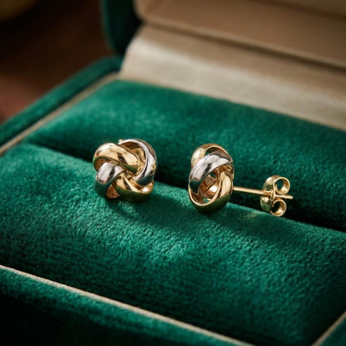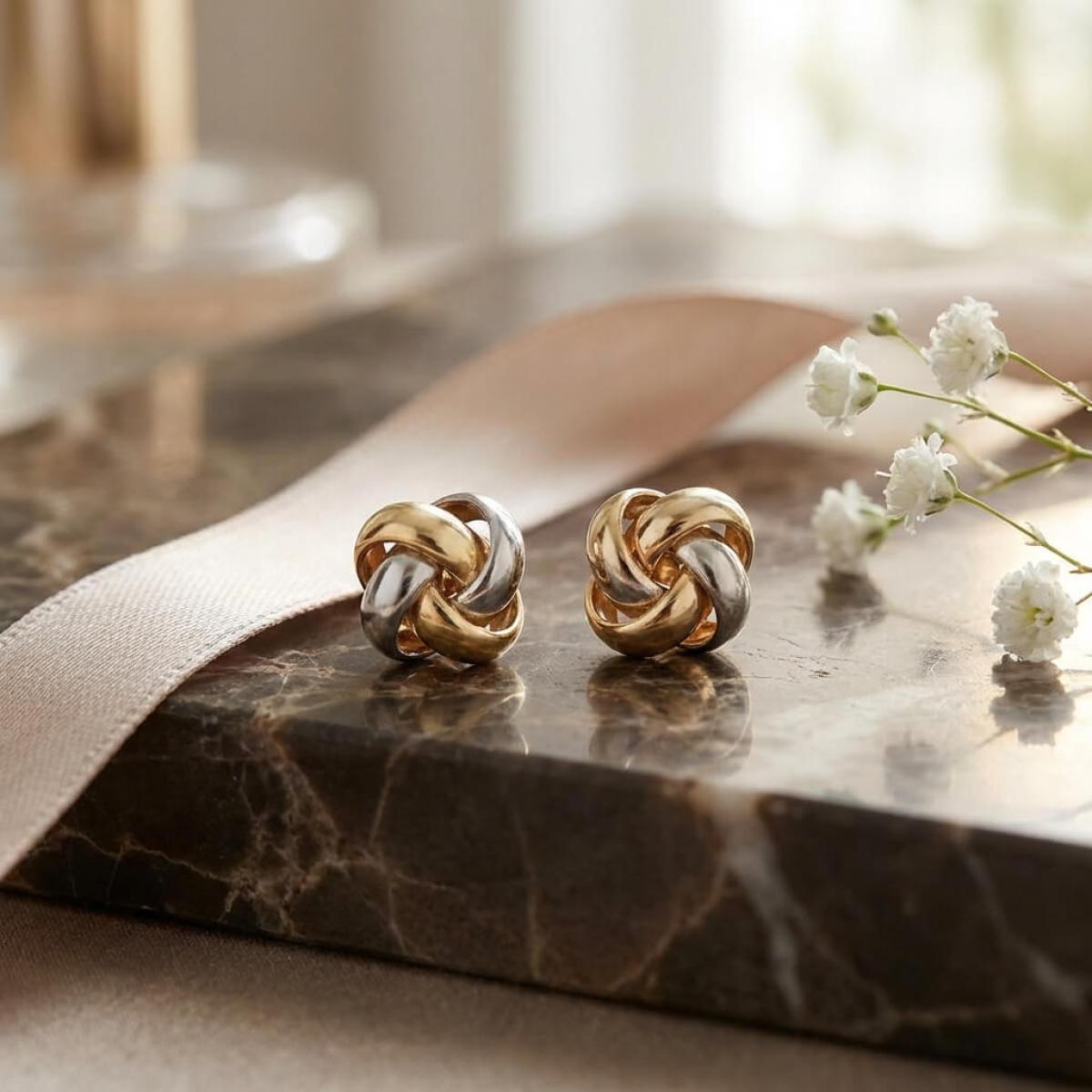 Златни обеци Възелчета с бяло и жълто злато пр.585