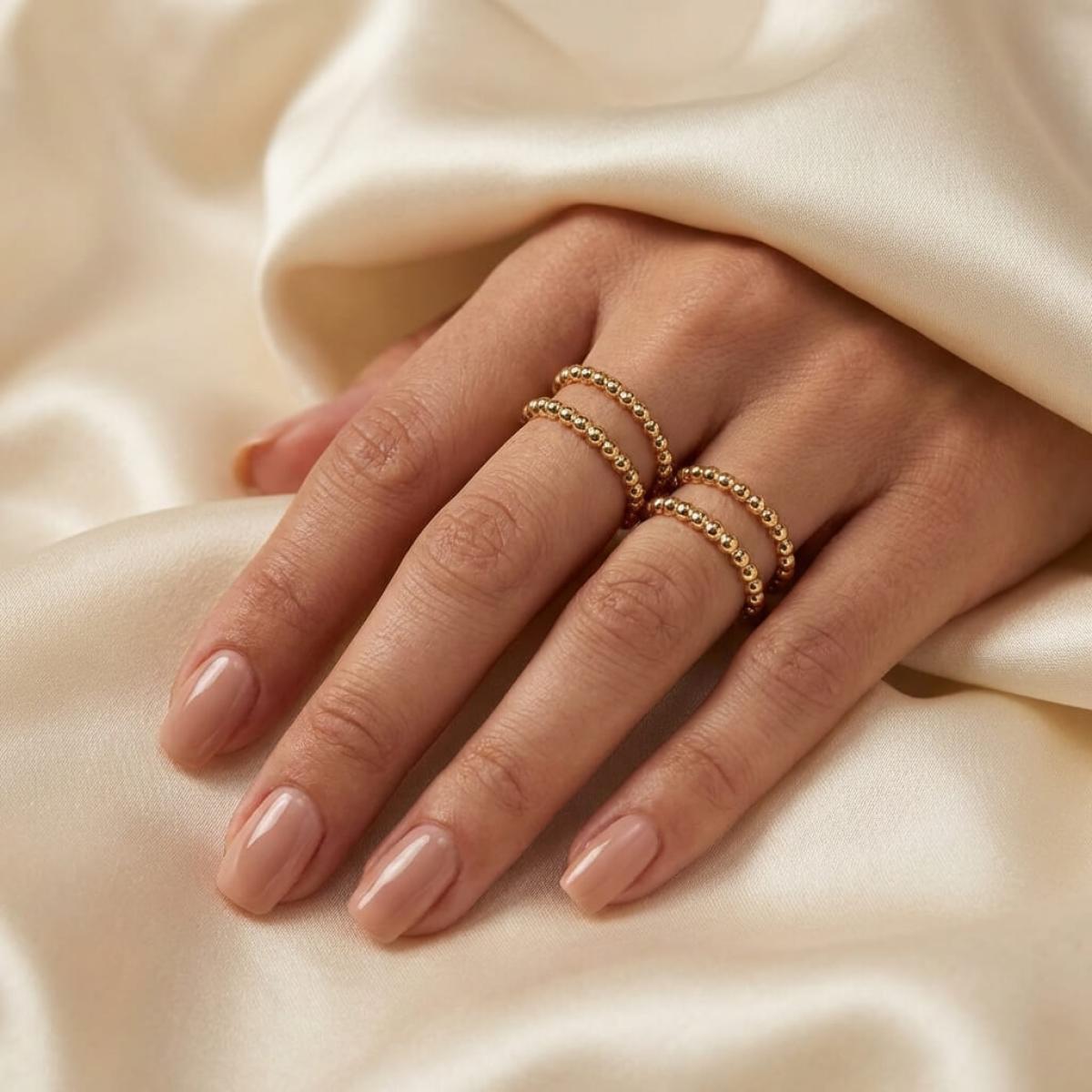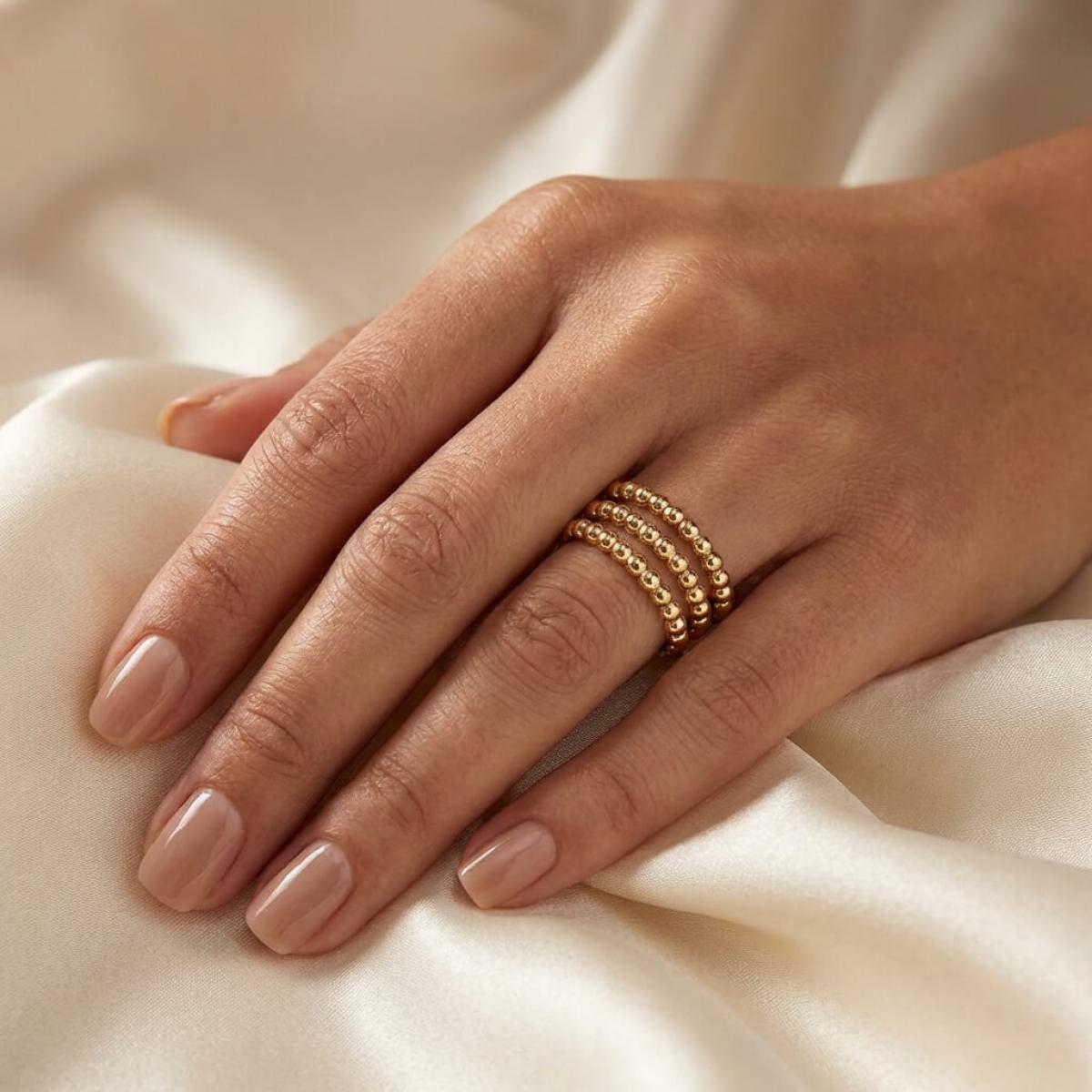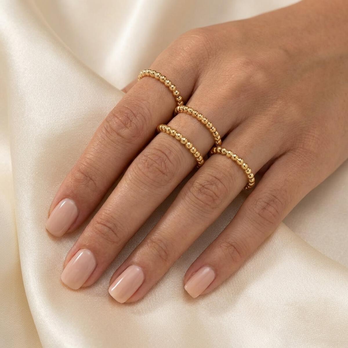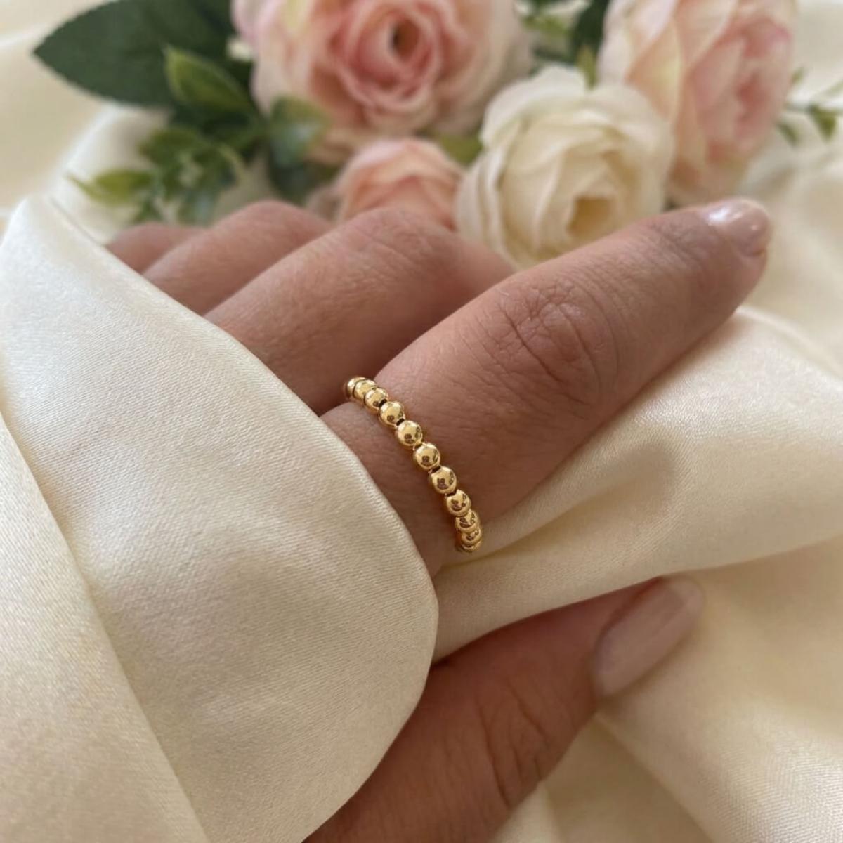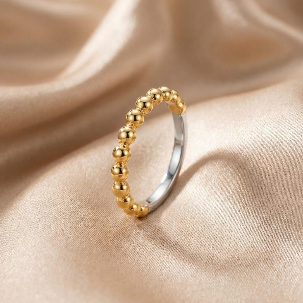 Пръстенът, който нарекохме „Balls”, е с дизайн, сходен с този на класическата брачна халка. В структурата му не присъства един централен изпъкнал елемент, а цялата концепция се базира на низ от малки златни топчета. По този начин пръстенът наподобява огърлица от мъниста, увита около пръста. Едно стилно и нежно решение, което ще се хареса на дамите с изискан женствен стил.