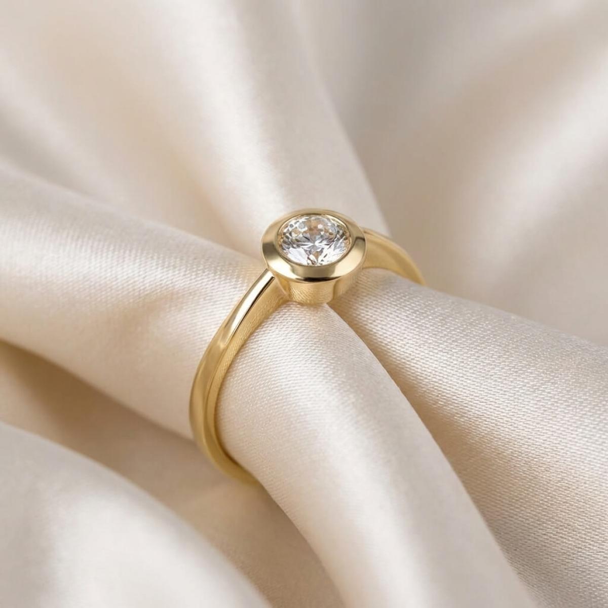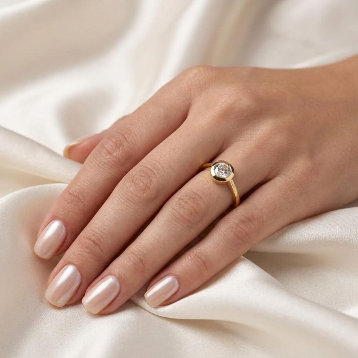 Годежният златен пръстен с циркони е персонален подарък, който излъчва изтънченост и нежност, като подчертава уникалната връзка между двама души. Той е не само бижу, но и силно символичен аксесоар, който ще напомня на двамата за обещанието им да бъдат заедно през живота, в радост и тъга, във всеки един момент от тяхната обща история.