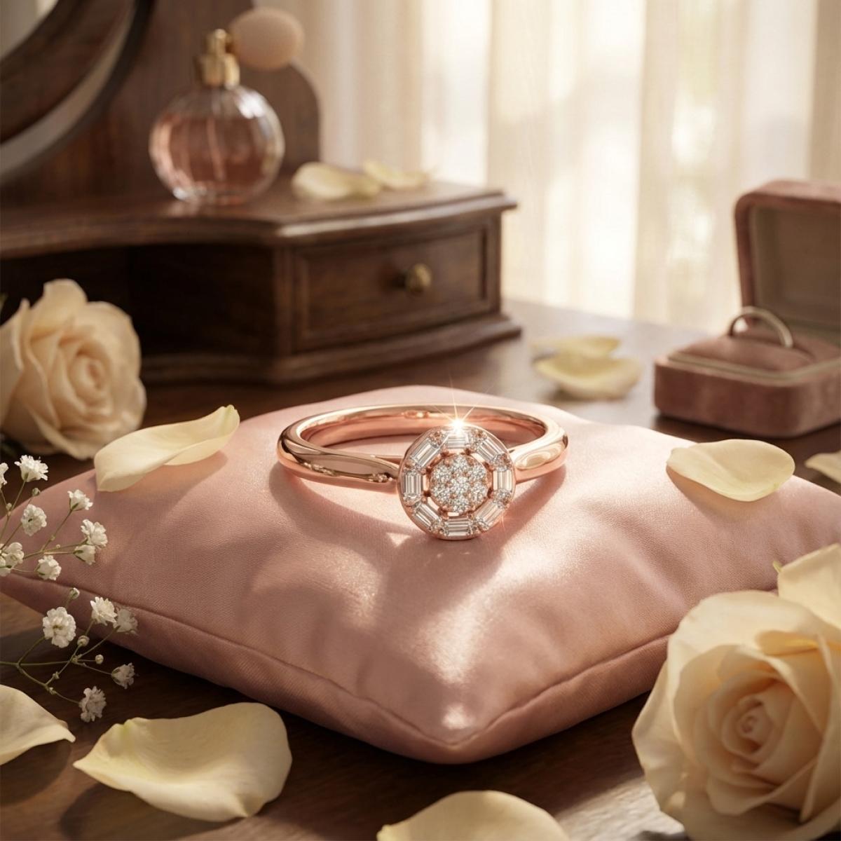 Символ на искрена обич и вечна връзка, пръстенът Sunshine е изящно бижу изработено от розово злато проба 585 и инкрустиран с естествен диамант.