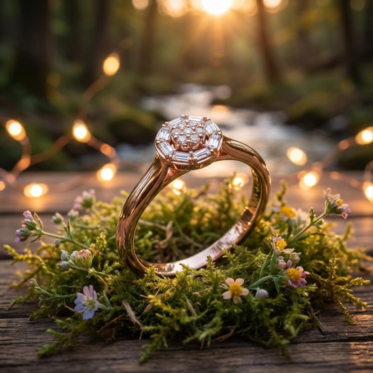 Златен пръстен с перфектно шлифован диамант.