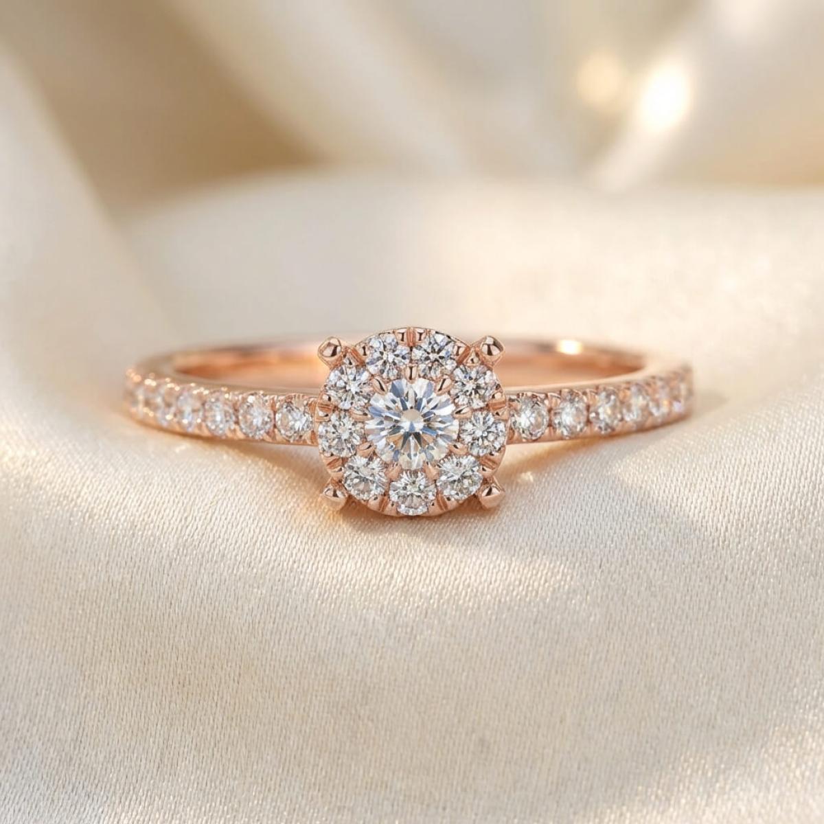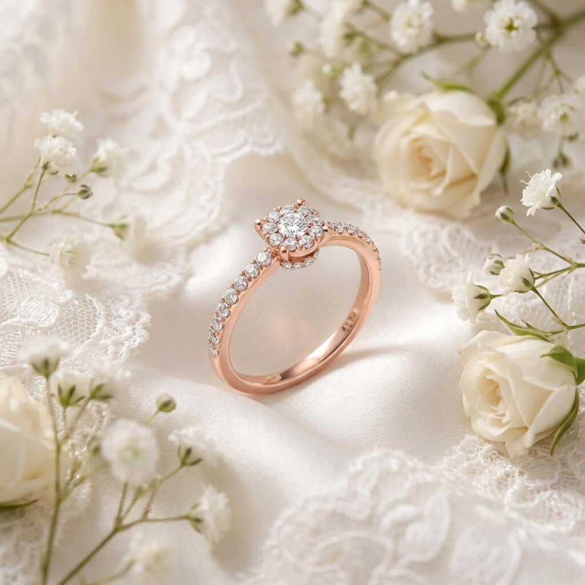 Символ на искрена обич и вечна връзка, пръстенът Вечност е изящно изработен от розаво злато проба 585 и инкрустиран с естествен диамант.