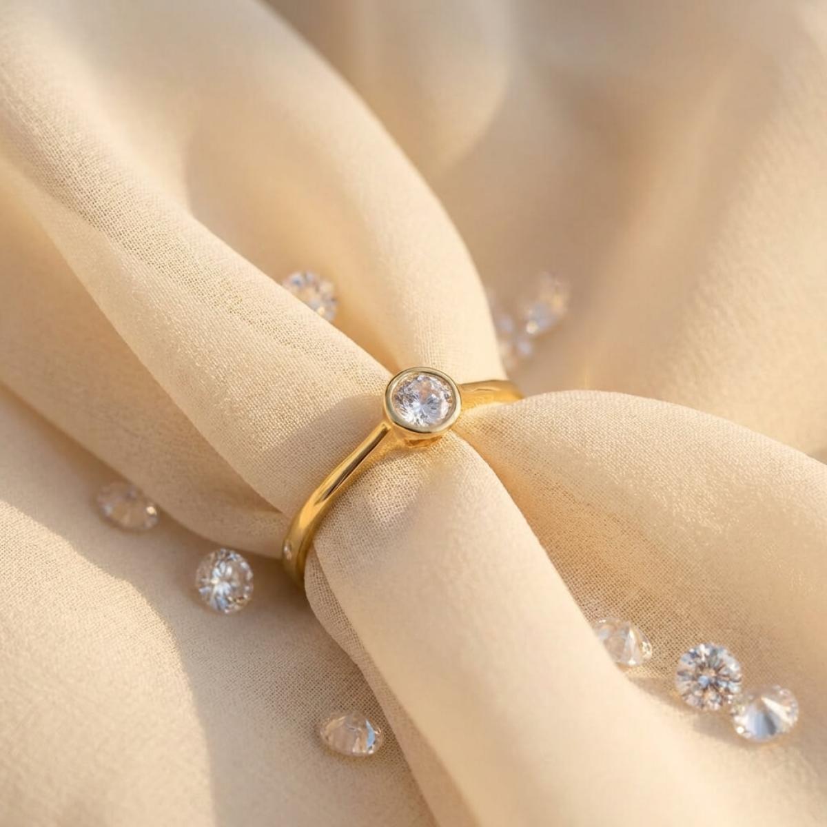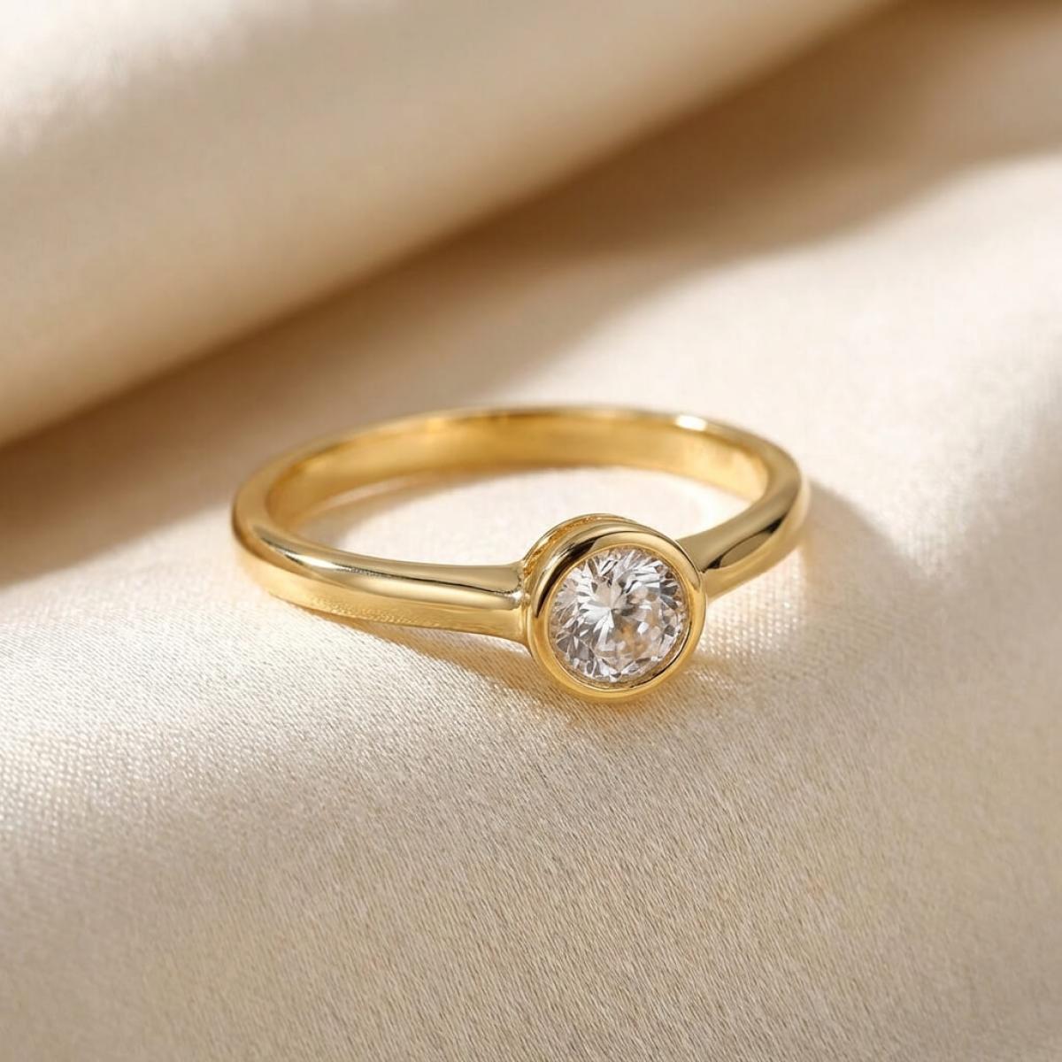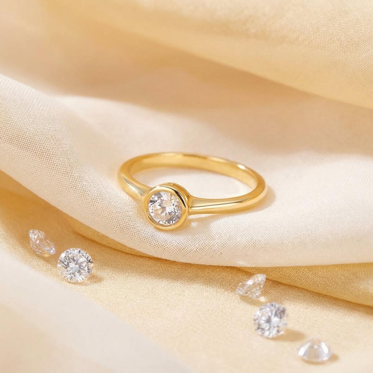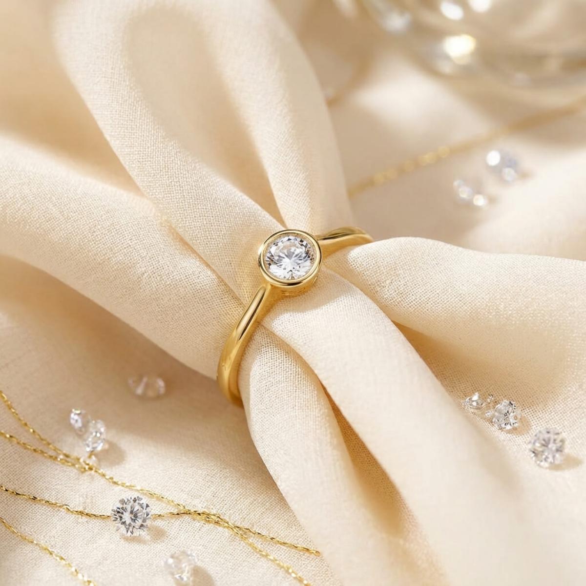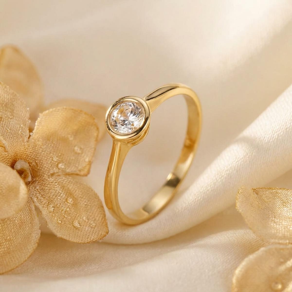 Ако сте твърдо решени да заложите на традиционно решение, изберете този златен пръстен с циркон за дамата, спечелила вашето сърце.