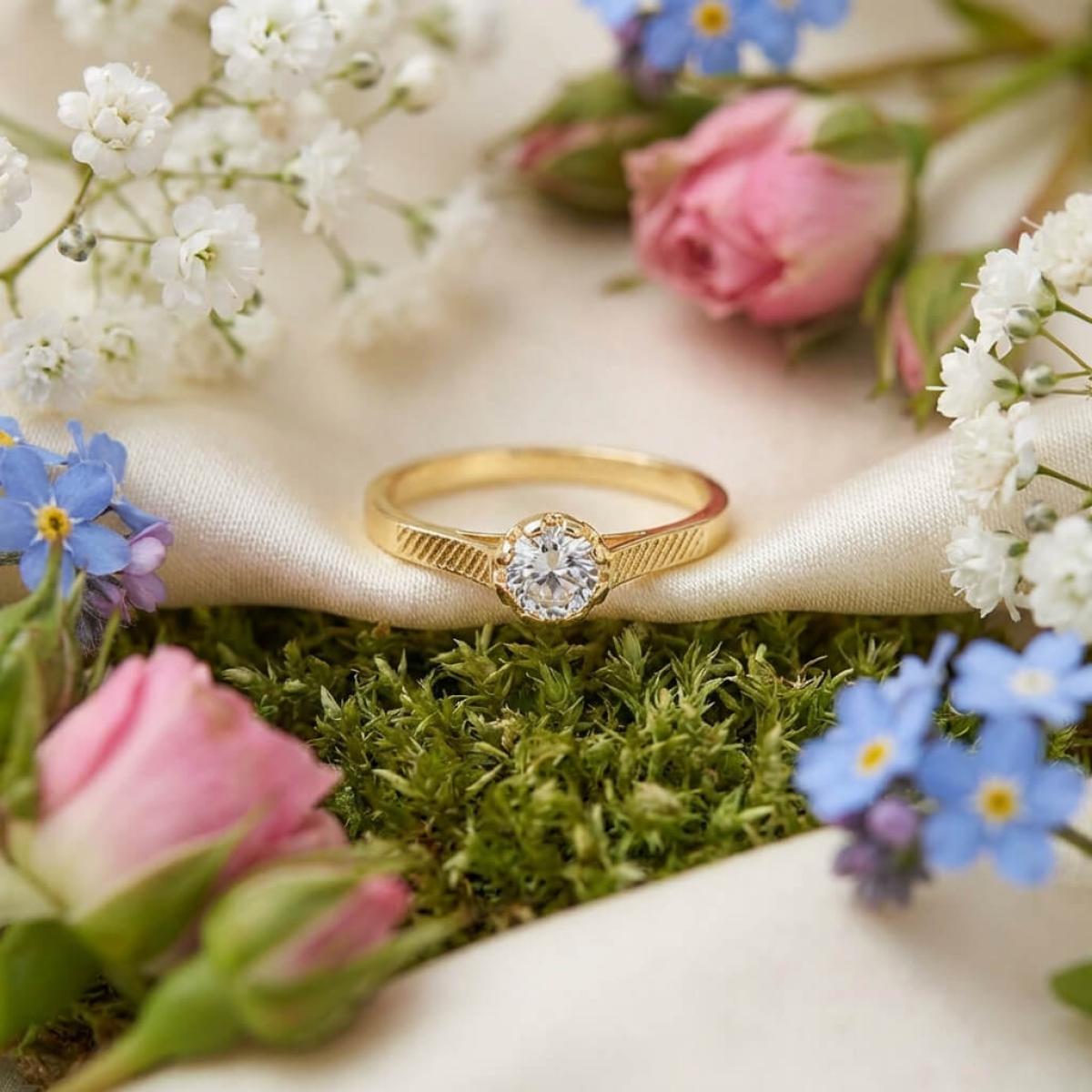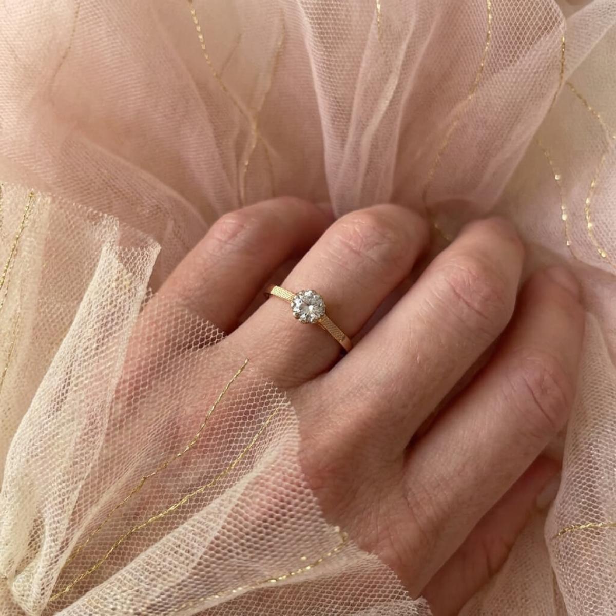 Ако сте твърдо решени да заложите на традиционно решение, изберете този златен пръстен с циркон за дамата, спечелила вашето сърце.