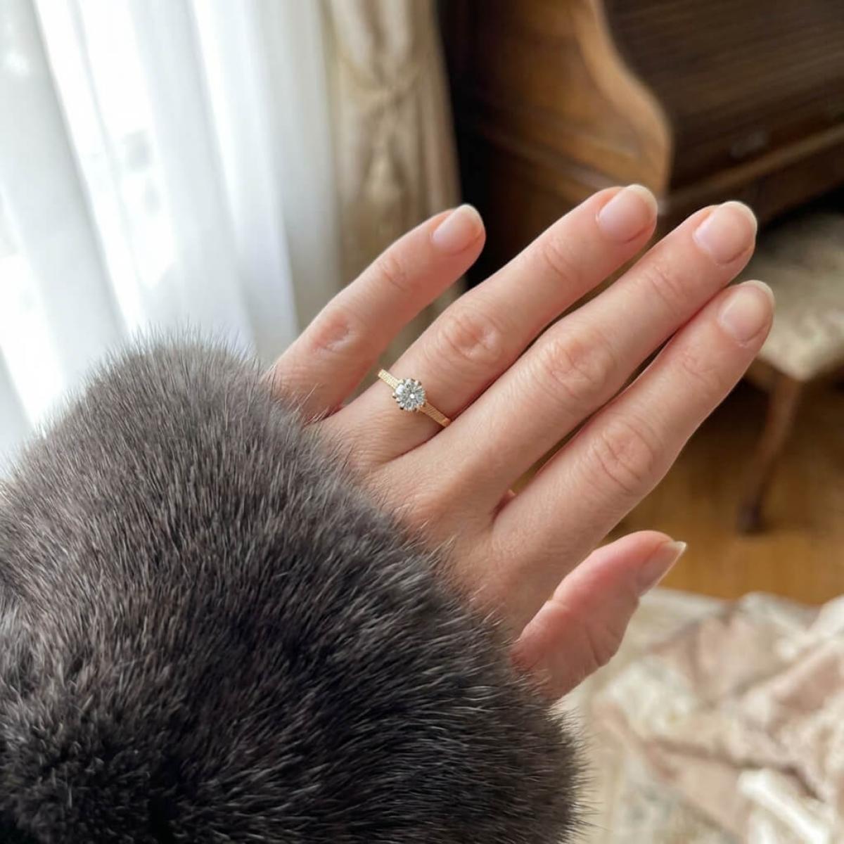Пръстенът е изработен от 14-каратово злато проба 585.
