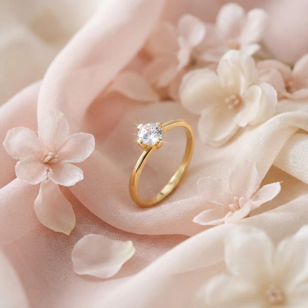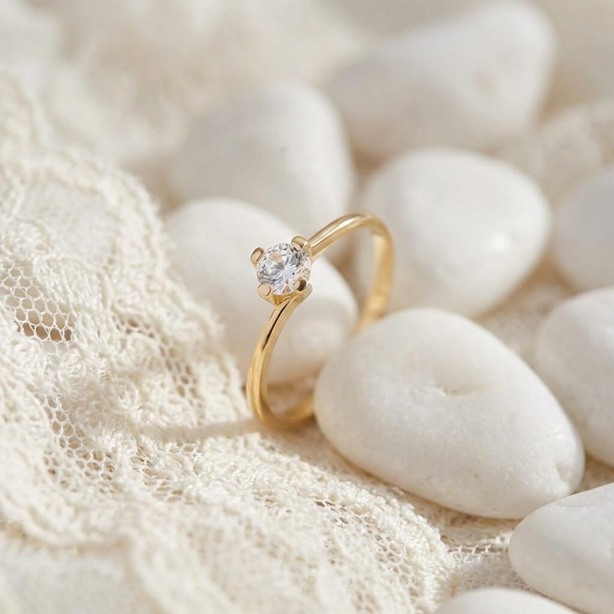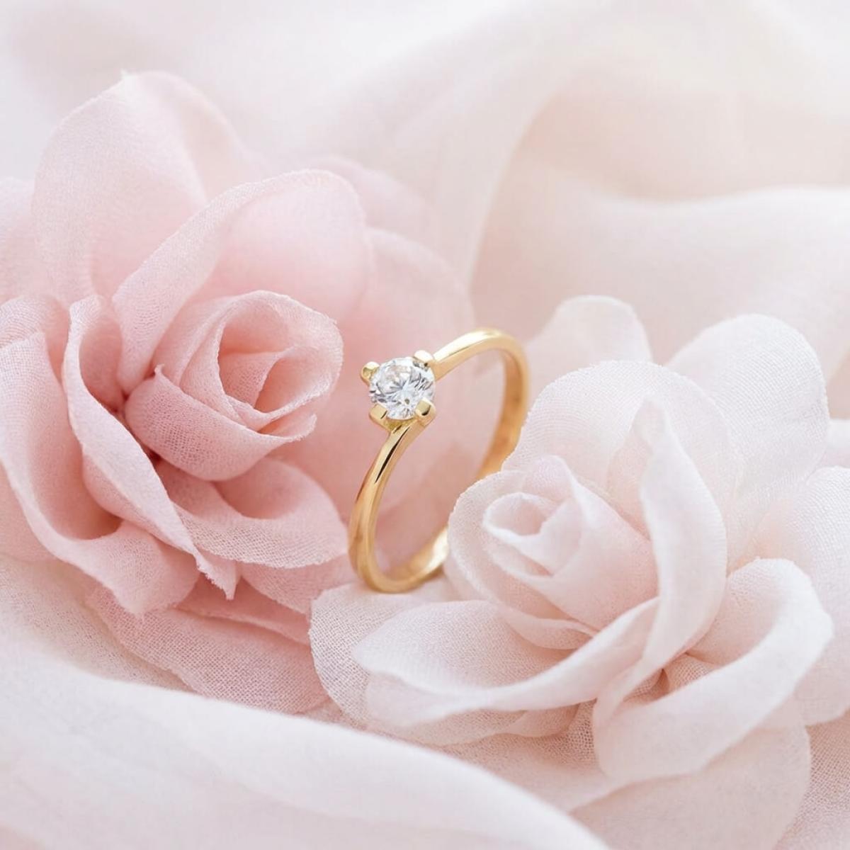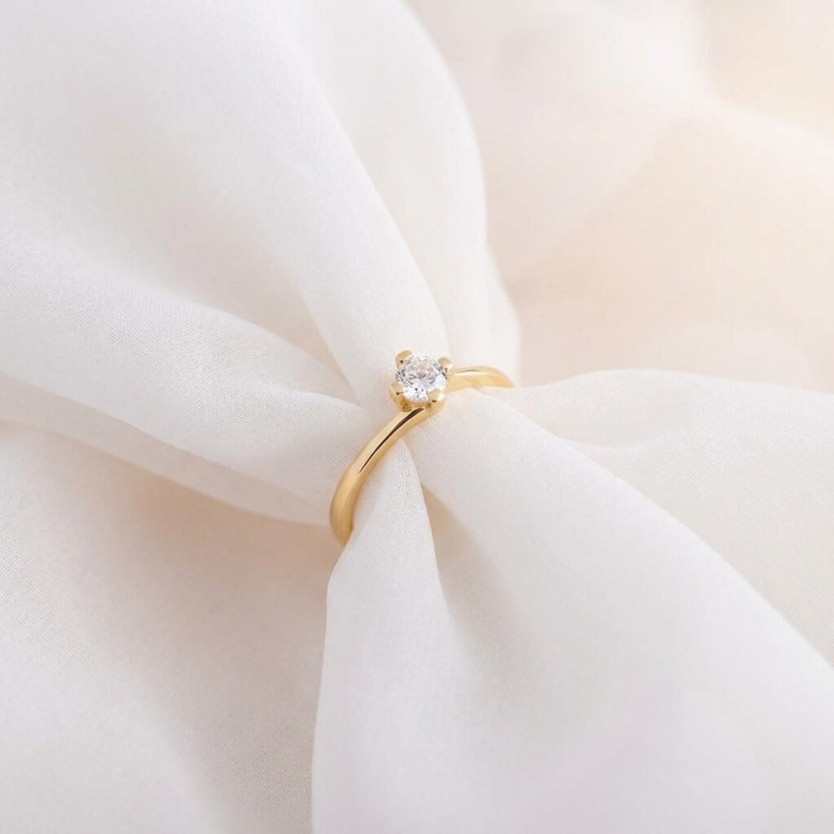 Ако сте твърдо решени да заложите на традиционно решение, изберете този златен пръстен с циркон за дамата, спечелила вашето сърце.