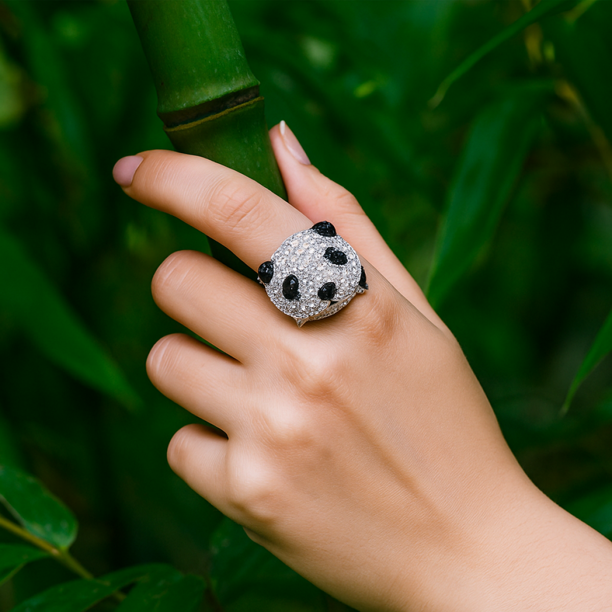 Очарователна черно-бяла панда, която обгръща пръста Ви сякаш е жива! Гарантираме Ви,че ще се влюбите в нея и тя със сигурност ще се превърне в любимото Ви бижу!
