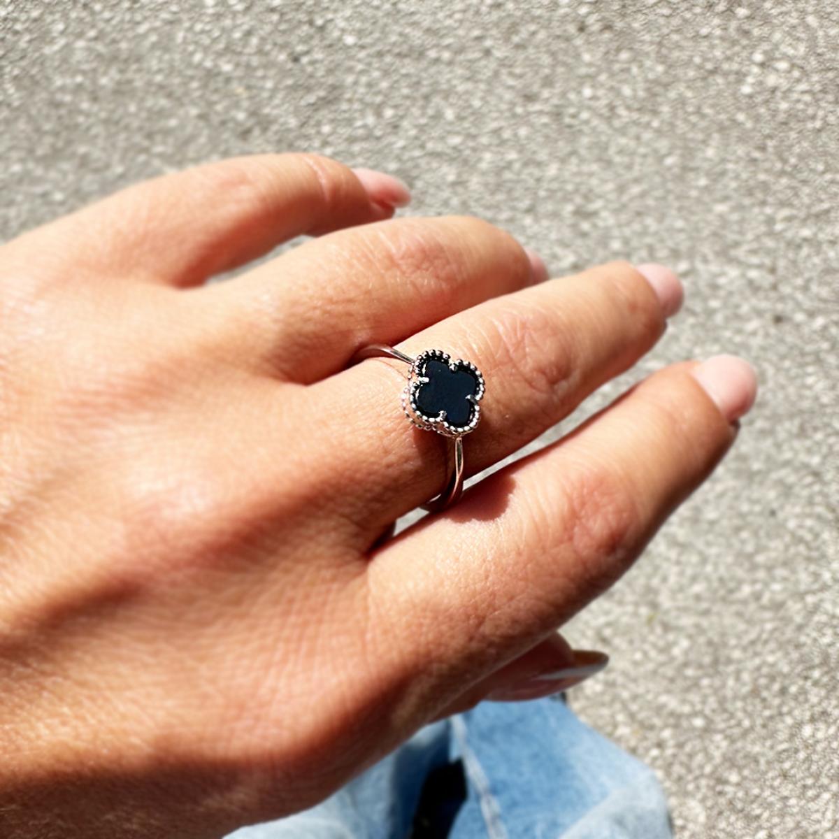 Елегантен и изискан сребърен пръстен, изработен от сребро проба 925, с красиво полиран оникс в центъра. Камъкът оникс е символ на сила, стабилност и увереност – подходящ за хора, които ценят класическия стил и дълбоката енергия на камъни.